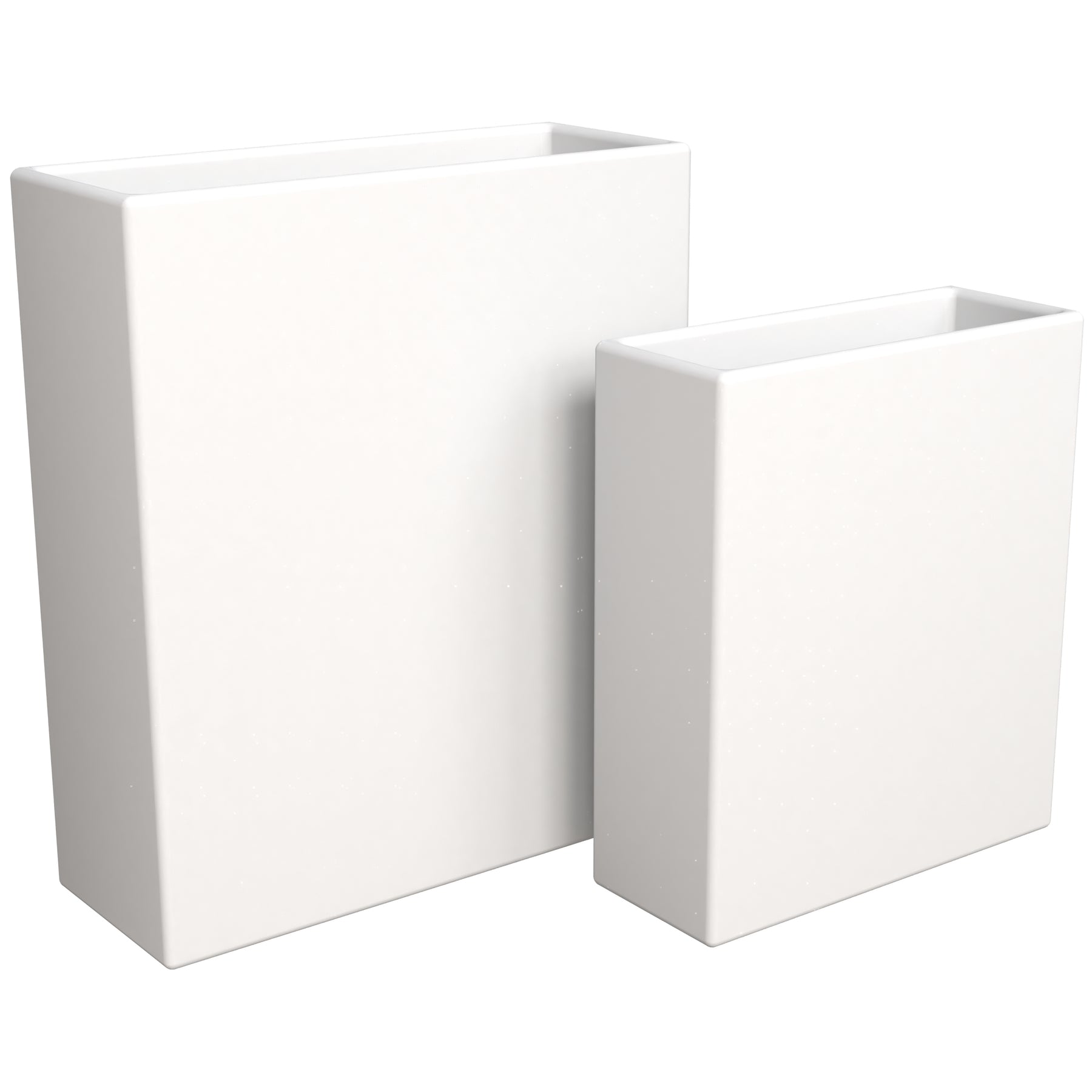 - Embrace a contemporary aesthetic with this rectangular planter. Its sleek lines and timeless form draw the eye, making it a captivating focal point in any room. The versatile shape effortlessly complements various design styles.