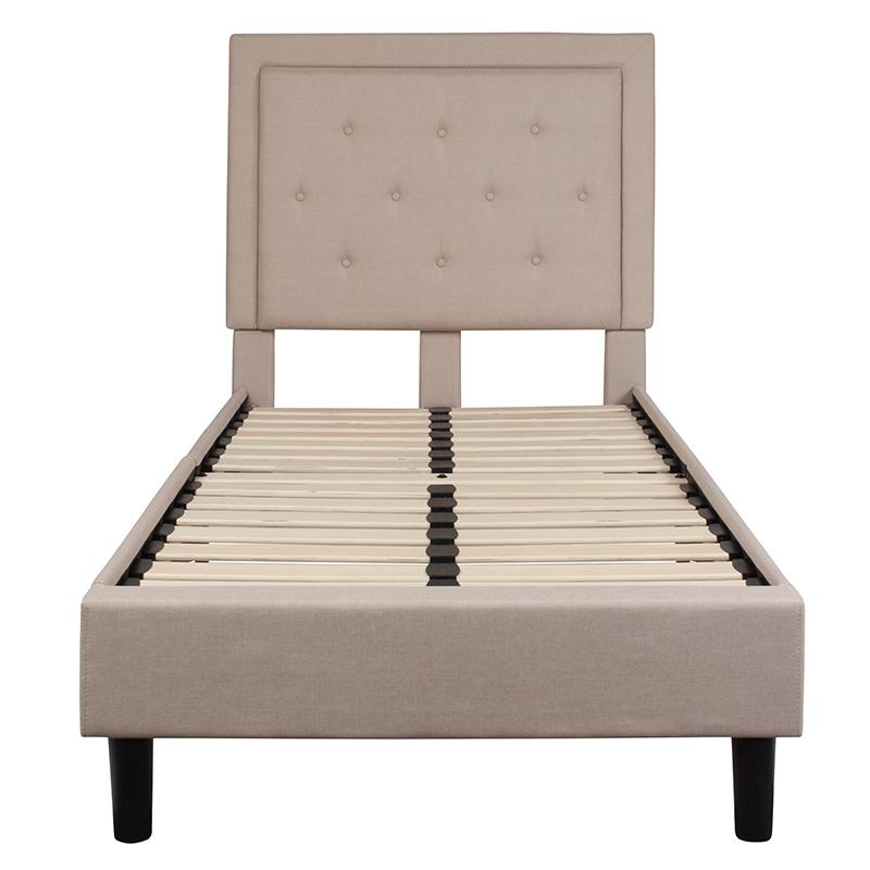 Roxbury Twin Size Tufted Upholstered Platform Bed in Beige Fabric