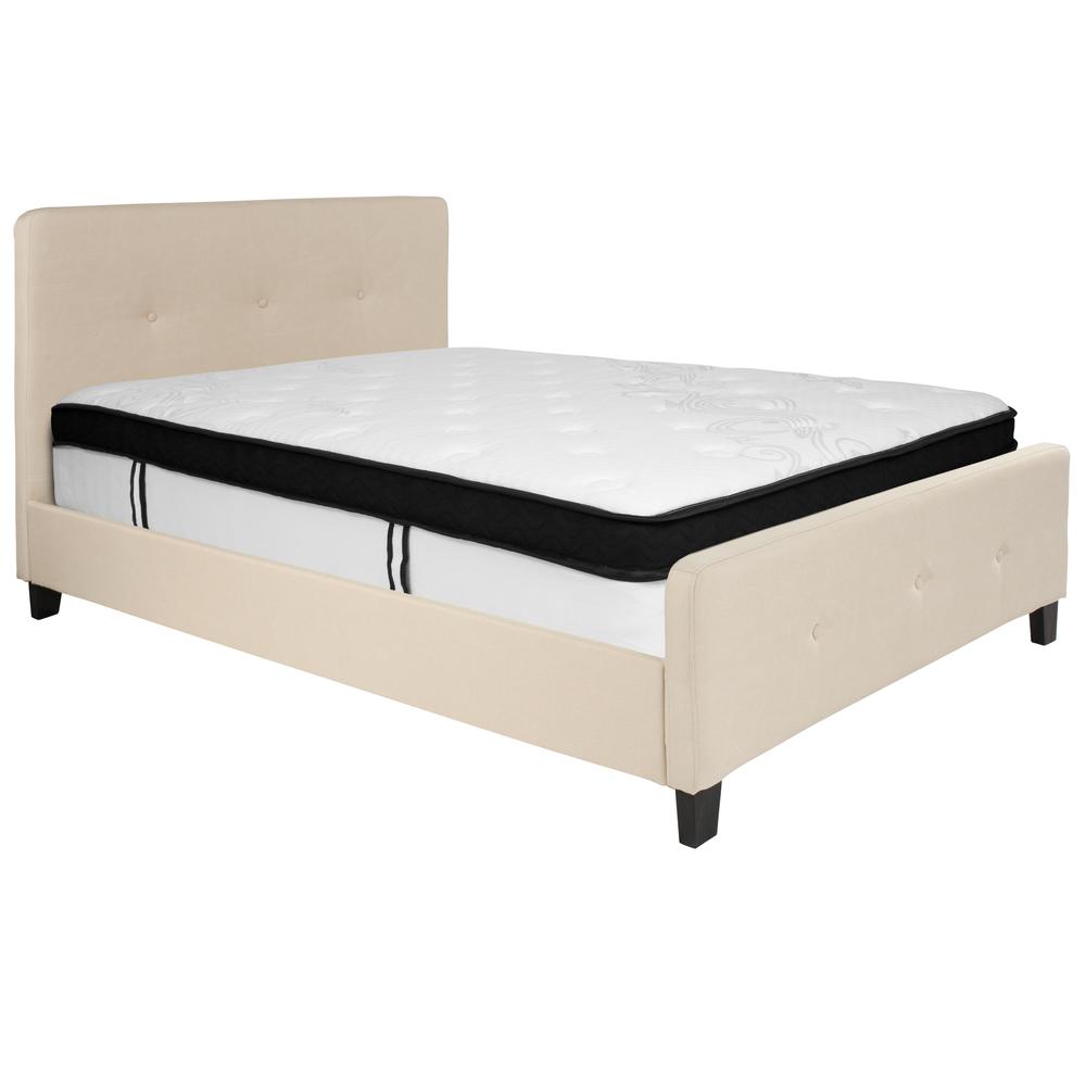 Tribeca Full Size Tufted Upholstered Platform Bed in Beige Fabric with Memory Foam Mattress