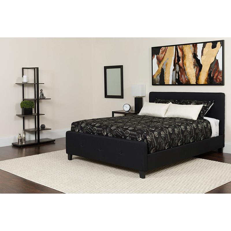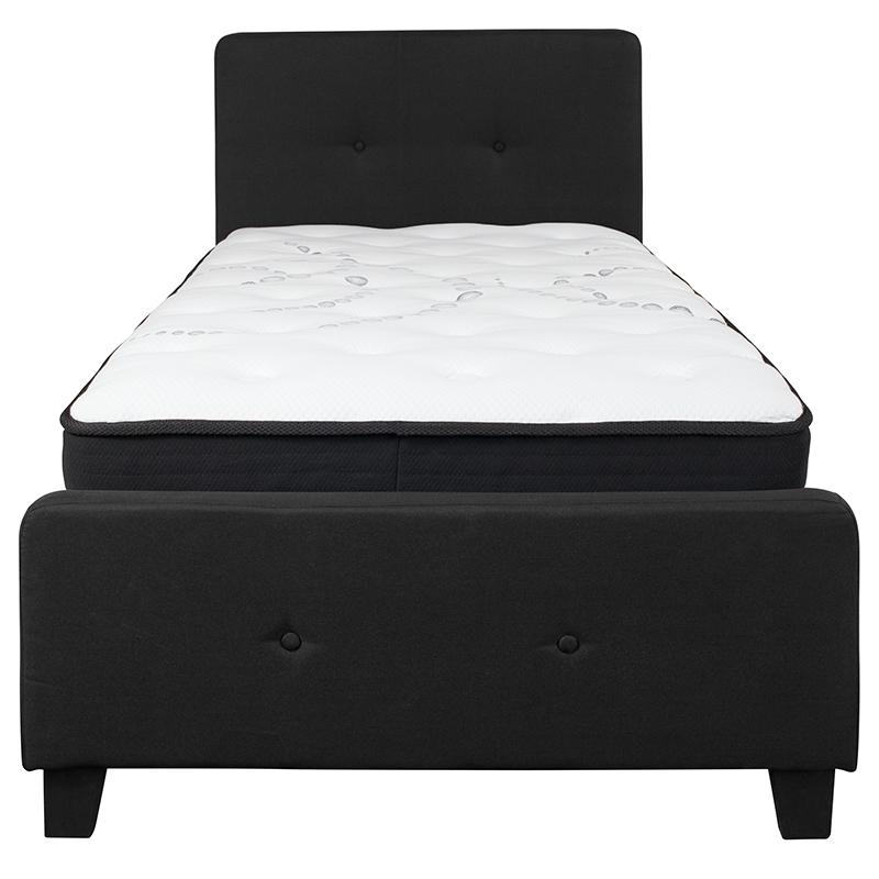 Tribeca Twin Size Tufted Upholstered Platform Bed in Black Fabric with Pocket Spring Mattress
