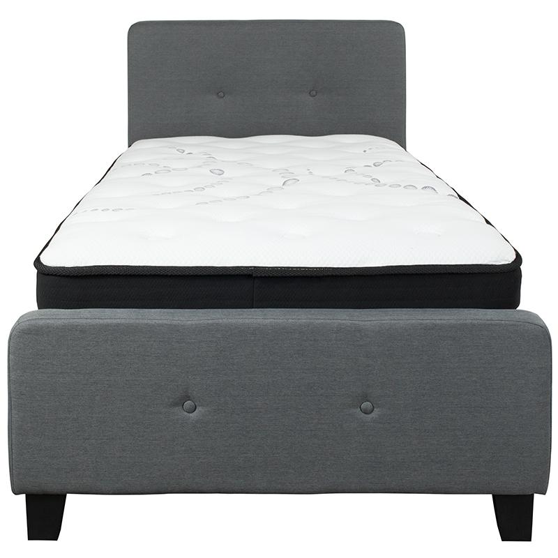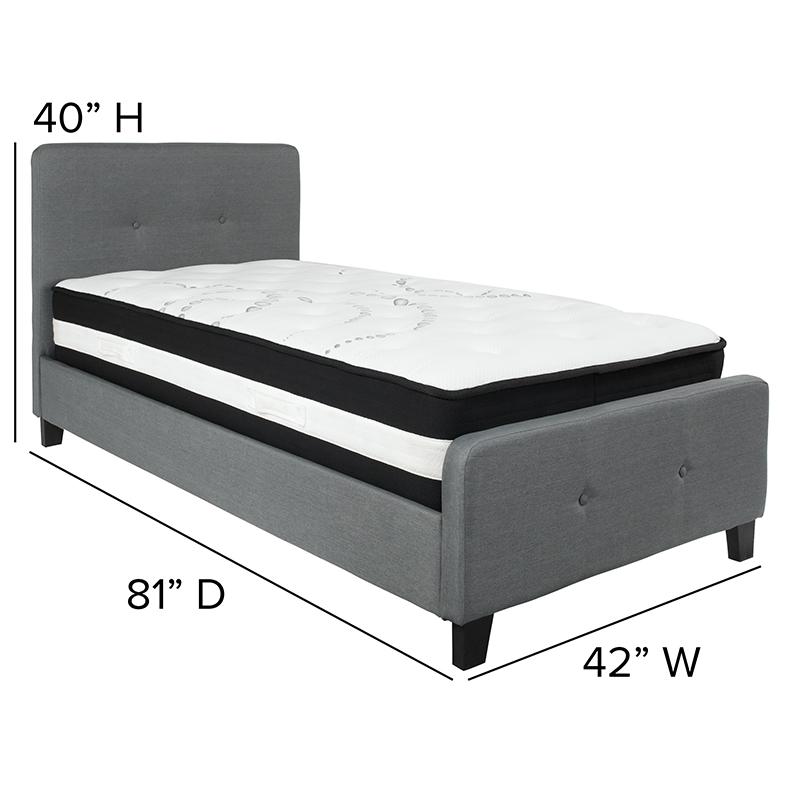 Tribeca Twin Size Tufted Upholstered Platform Bed in Dark Gray Fabric with Pocket Spring Mattress
