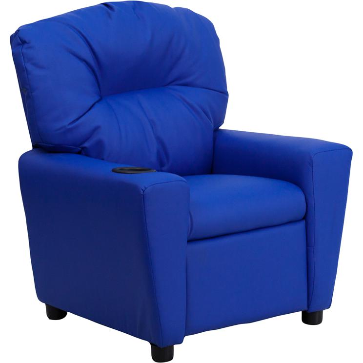 Contemporary Blue Vinyl Kids Recliner with Cup Holder
