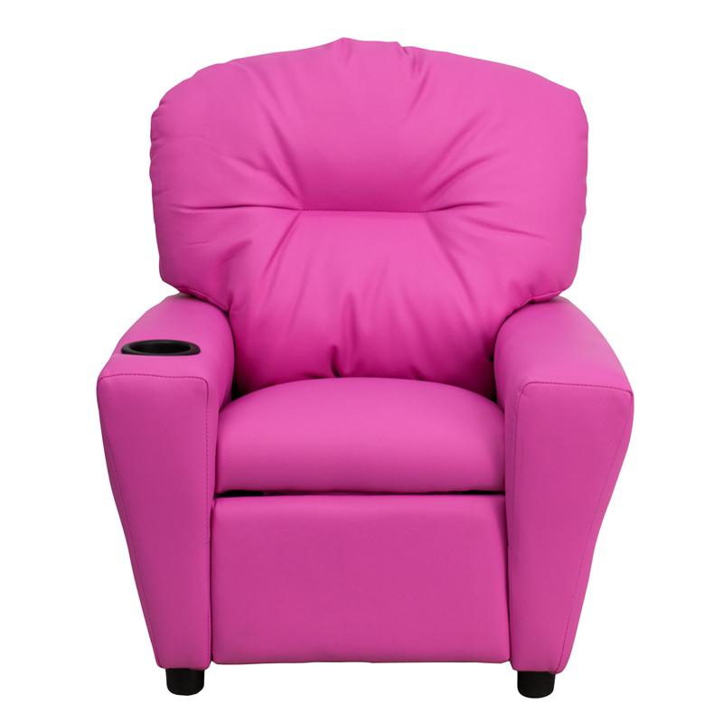 Contemporary Hot Pink Vinyl Kids Recliner with Cup Holder