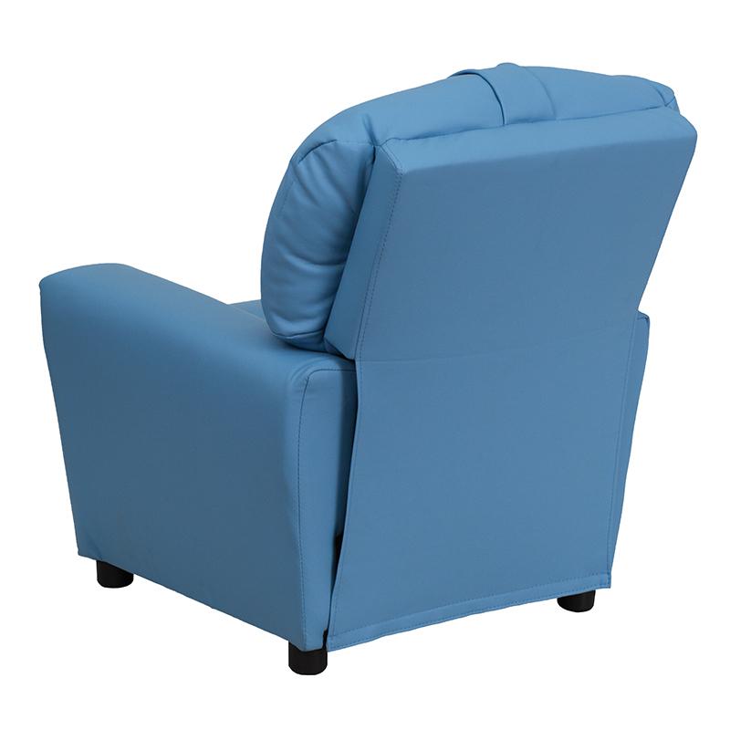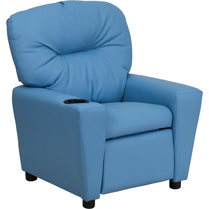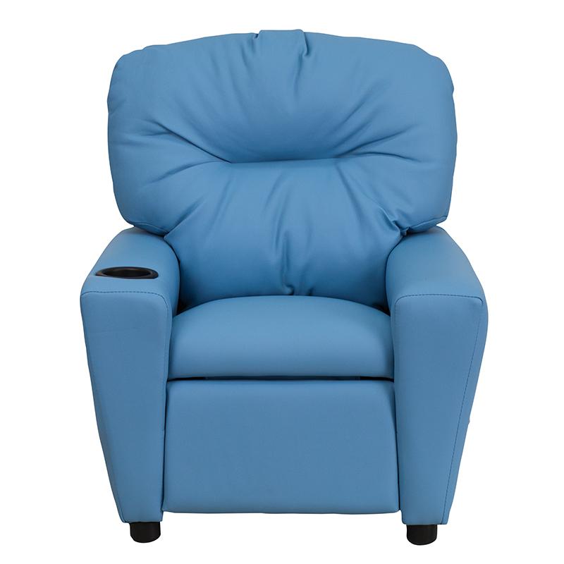 Contemporary Light Blue Vinyl Kids Recliner with Cup Holder