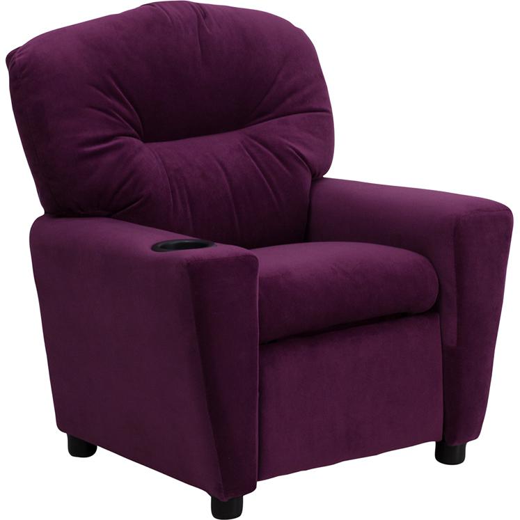 Contemporary Purple Microfiber Kids Recliner with Cup Holder