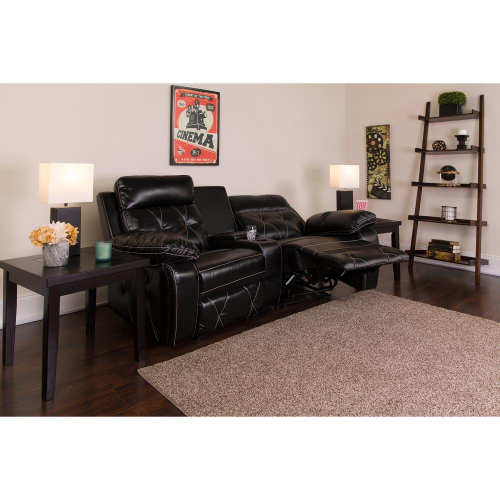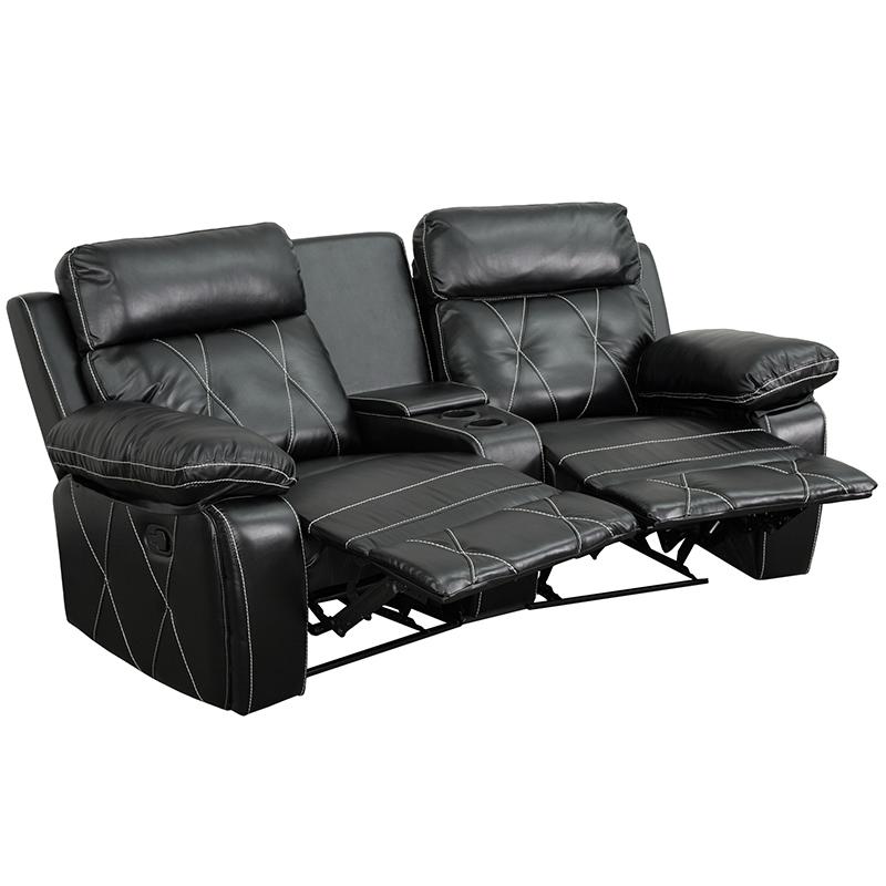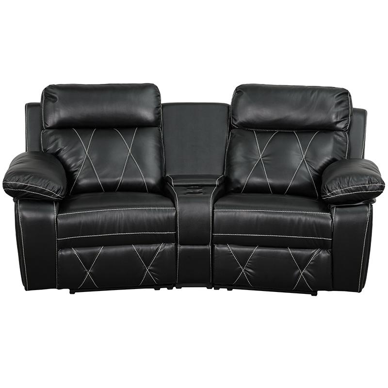 Reel Comfort Series 2-Seat Reclining Black LeatherSoft Theater Seating Unit with Curved Cup Holders