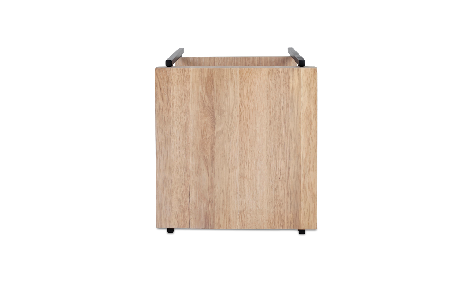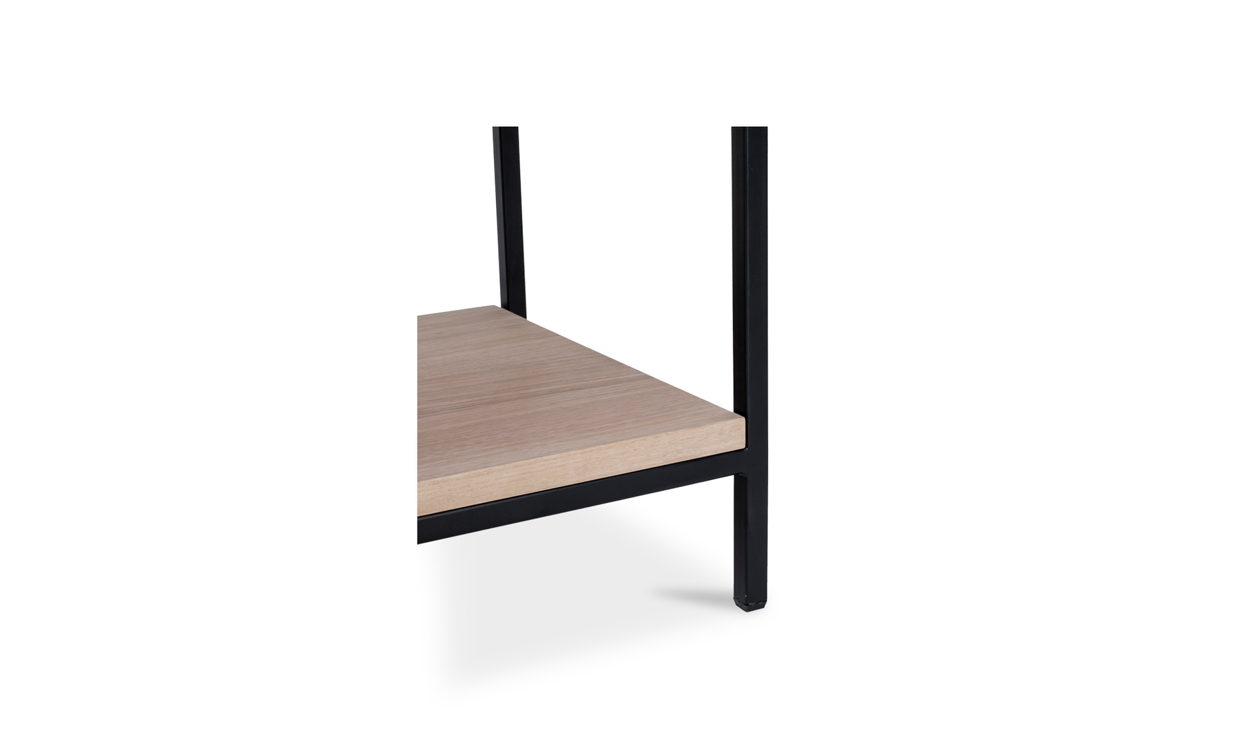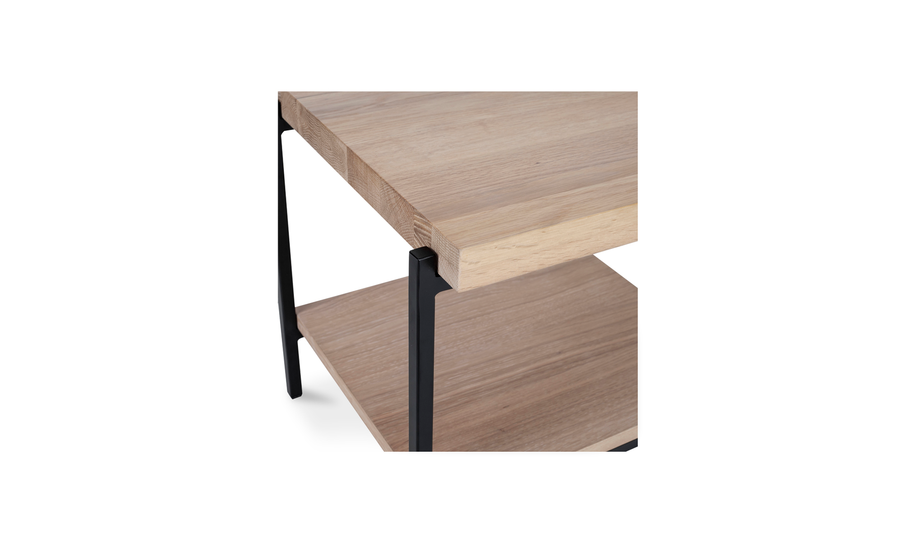 Rugged chic. This richly textured solid oak table top features its own unique knots, whorls, and woodgrain. Strong metal legs give it a stylish industrial finish. With two tiers, it comfortably fits all of your treasures from magazines to TV remotes to accent pieces.Solid oak wood constructionMetal legsTwo-tieredContemporary modern styleWipe wooden furniture down regularly with a clean, dry cloth to remove dust. Use warm water and a mild soap to clean wooden furniture. Place your wooden furniture away from prolonged direct sunlight as this can result in 'spotting,' a phenomenon where bright and dark spots appear across the surface.Made in VietnamContemporary Modern. Color: White Oil and Black Metal We offer 2 Years warranty. Dimension:17W 16D 16H. Product Weight:19.00 lbs. Material: Solid Oak WoodMetalWe understand how important your home is and how decorating your kitchen, dining room or bedrooms with classy, contemporary furnishings can help make it a place that reflects who you are. We believe in the power modern furniture has in creating not just a home but YOUR home. We believe in feeling good about our home's environment, and we think you do too.