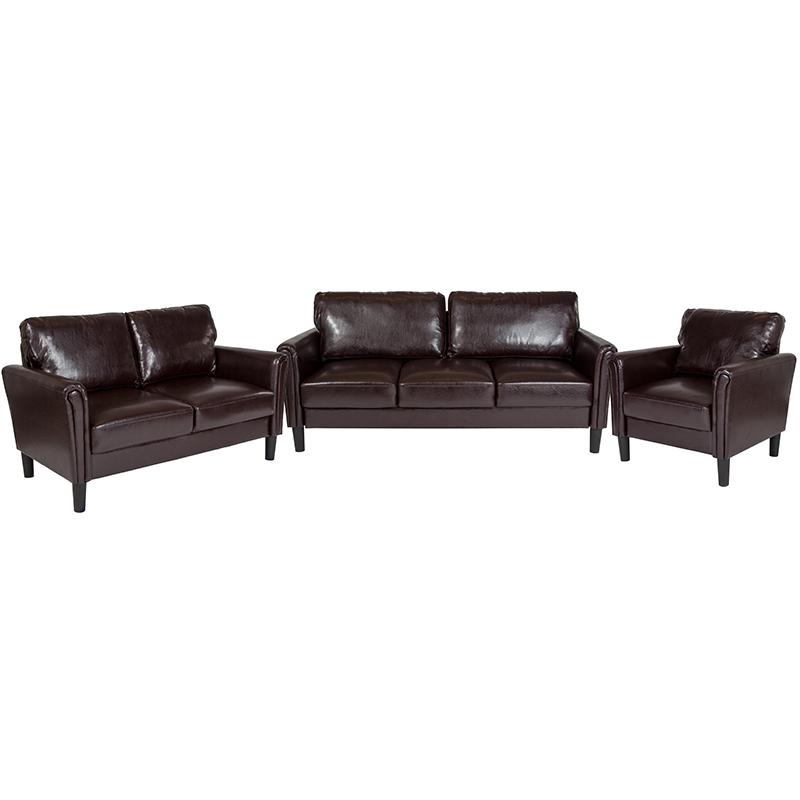 Bari 3 Piece Upholstered Set in Brown LeatherSoft