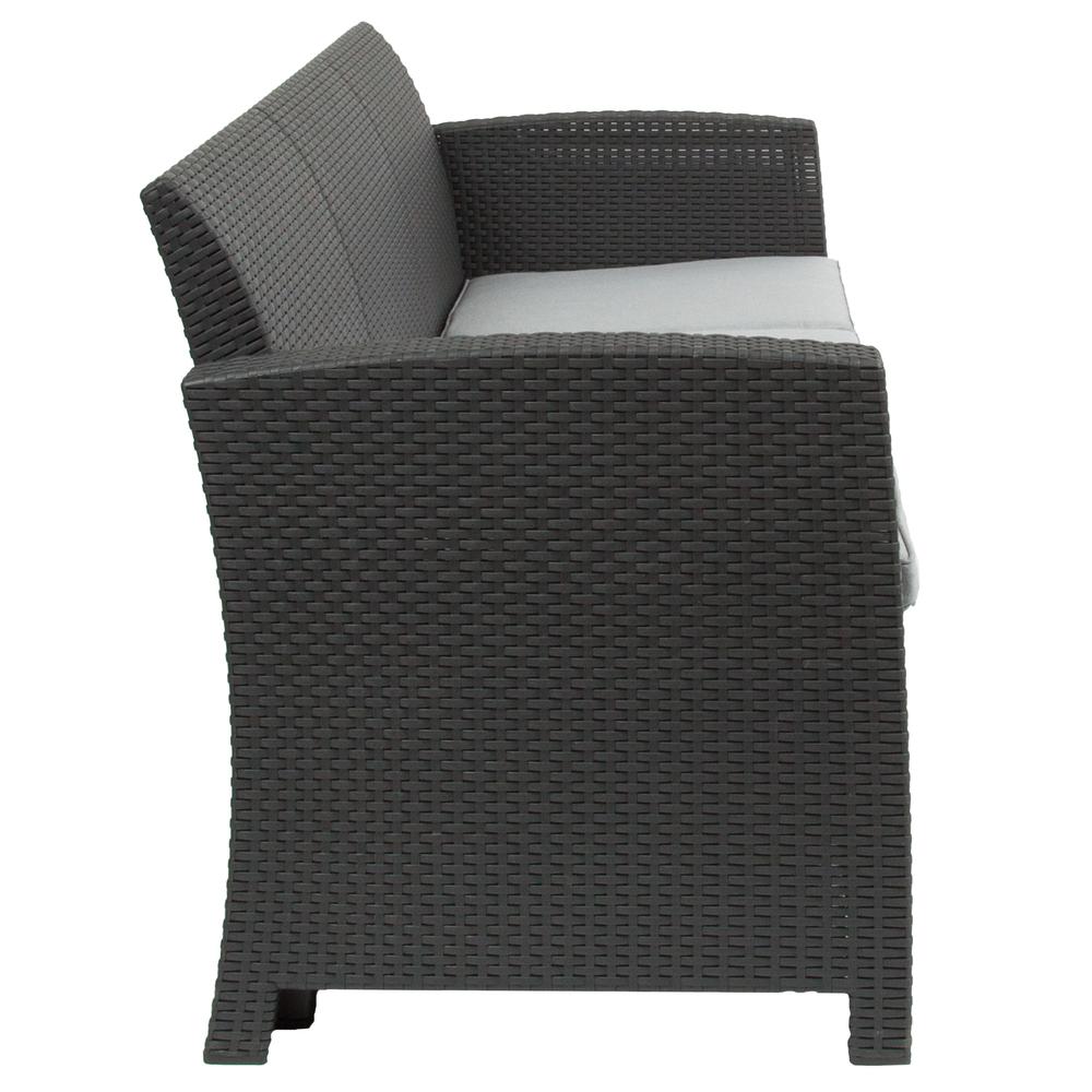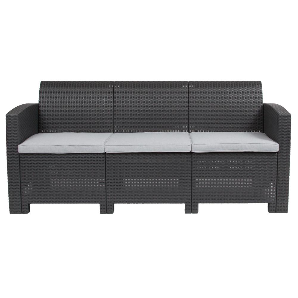 Dark Gray Faux Rattan Sofa with All-Weather Light Gray Cushions