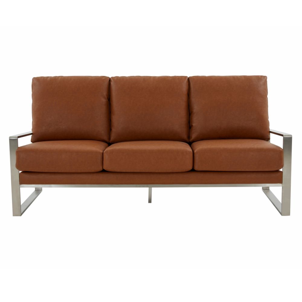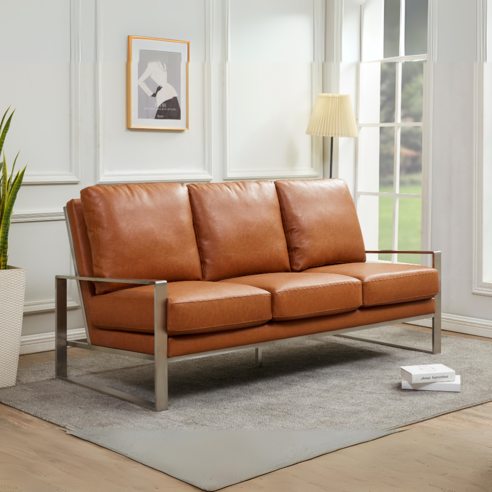 Jefferson Contemporary Modern Design Leather Sofa With Silver Frame