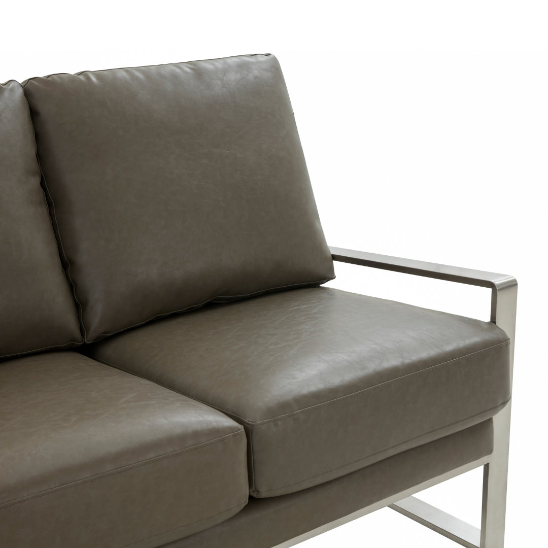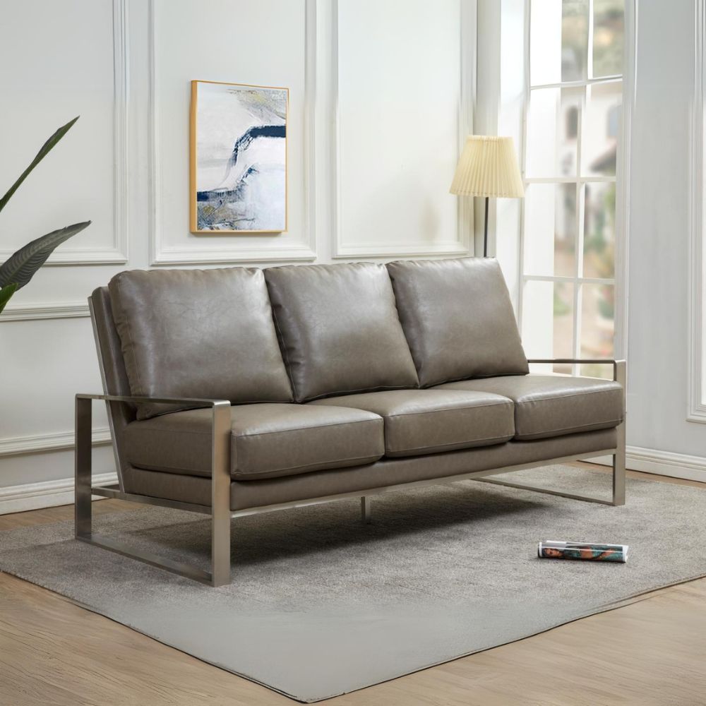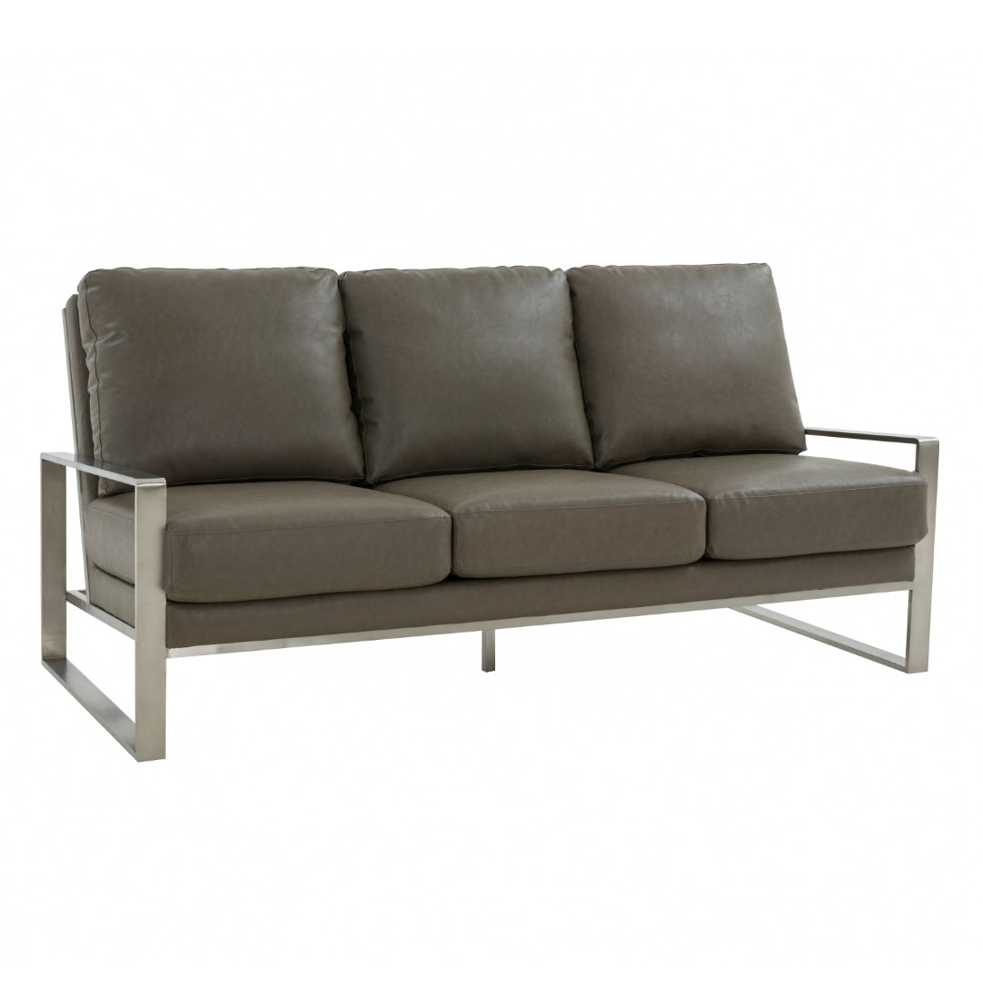 Jefferson Contemporary Modern Design Leather Sofa With Silver Frame