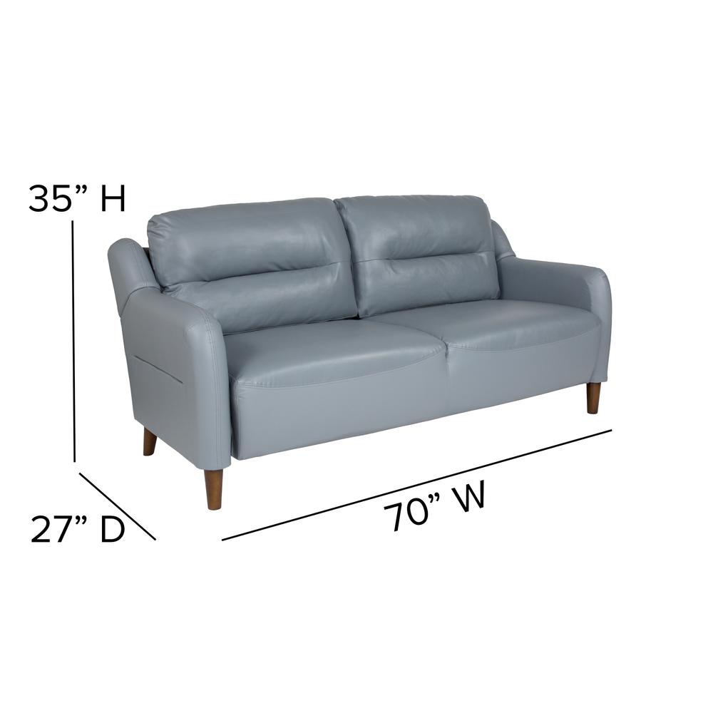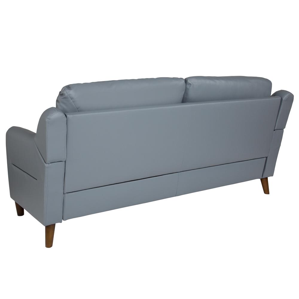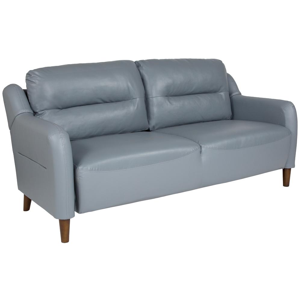 Newton Hill Upholstered Bustle Back Sofa in Gray LeatherSoft