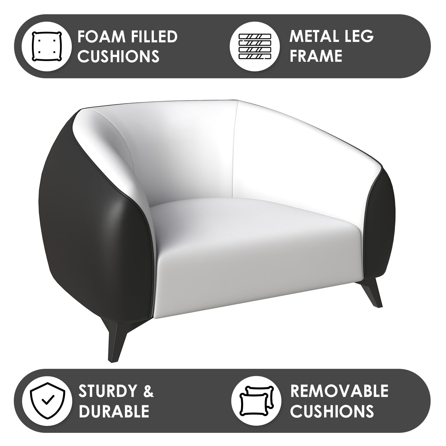 • Elevate your space with this single-seater sofa's sleek and contemporary aesthetic, featuring an aesthetically pleasing luxe design upholstery and a sturdy steel base. Its clean lines, premium materials, and minimalist design make it a standout piece that seamlessly blends into modern decor styles, adding a touch of sophistication and style to any room setting.
