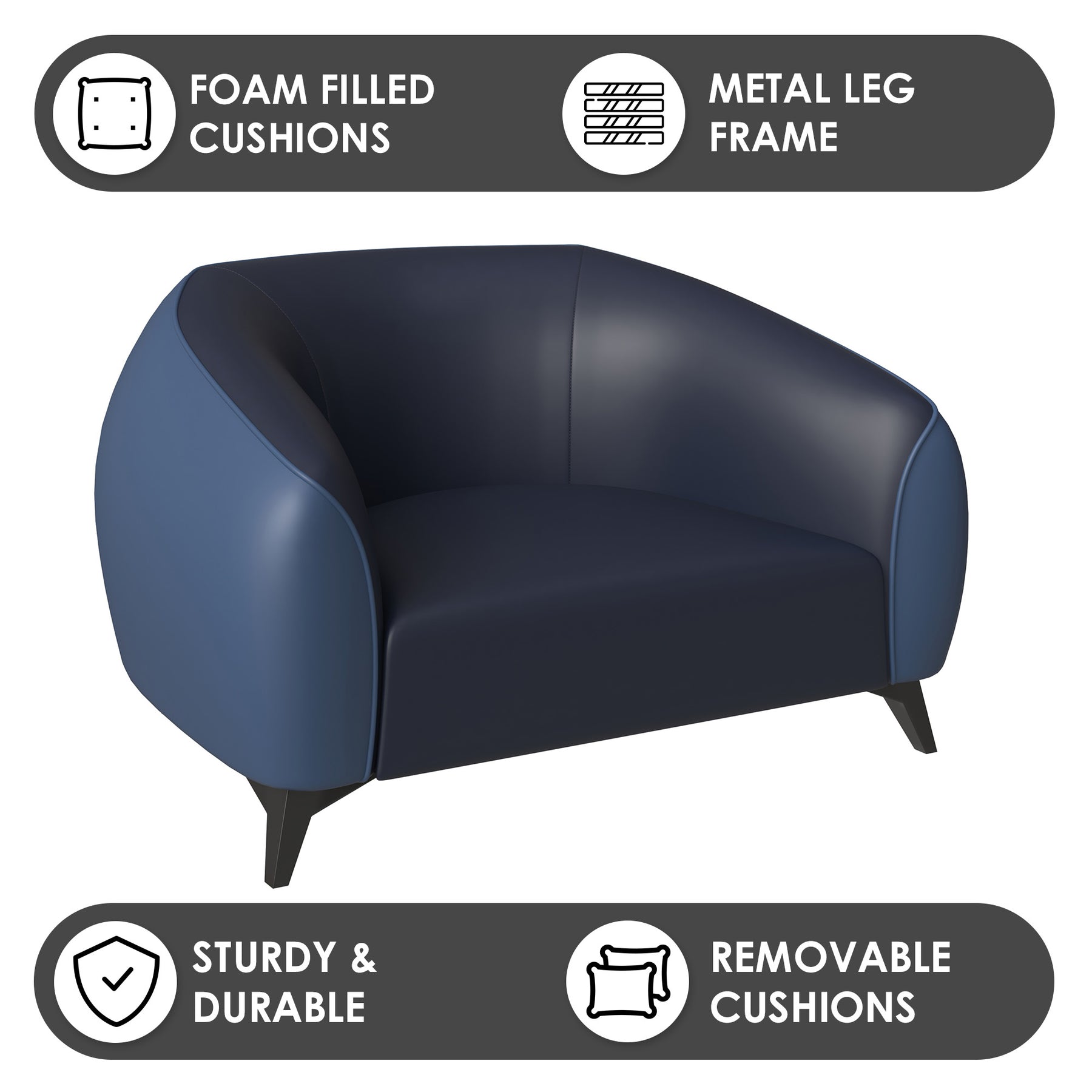 - Elevate your space with this single-seater sofa's sleek and contemporary aesthetic, featuring an aesthetically pleasing luxe design upholstery and a sturdy steel base. Its clean lines, premium materials, and minimalist design make it a standout piece that seamlessly blends into modern decor styles, adding a touch of sophistication and style to any room setting.