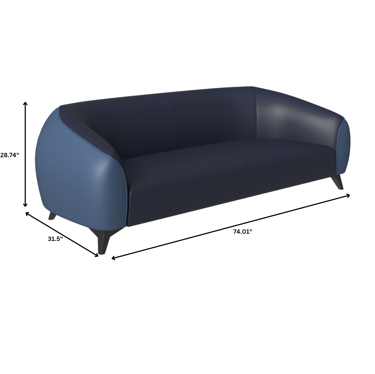- The sofa is elegantly draped in vegan leather, offering a soft and durable seating surface with a luxurious appearance. It is not only stylish but also highly practical, as it is resistant to stains and is easy to clean, ensuring the sofa maintains its luxurious appearance with minimal effort.
