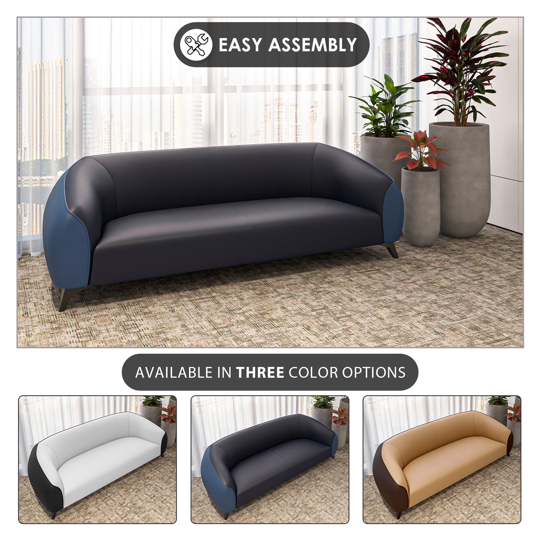 Transform your living room with the Opula Series Modern Three-Seater Sofa by Skyline. This luxurious sofa is upholstered in premium eco-leather, providing a sleek and sophisticated look. The densely foam-filled seat and back offer superior comfort, while the solid wood frame and metal legs ensure stability and durability. The seat construction features web suspension for enhanced support and longevity. With a weight capacity of 800 lbs this sofa is designed to accommodate multiple users comfortably. Maintenance is a breeze; simply wipe clean with a damp or dry cloth. Perfect for modern and contemporary interiors, this sofa is both stylish and practical.