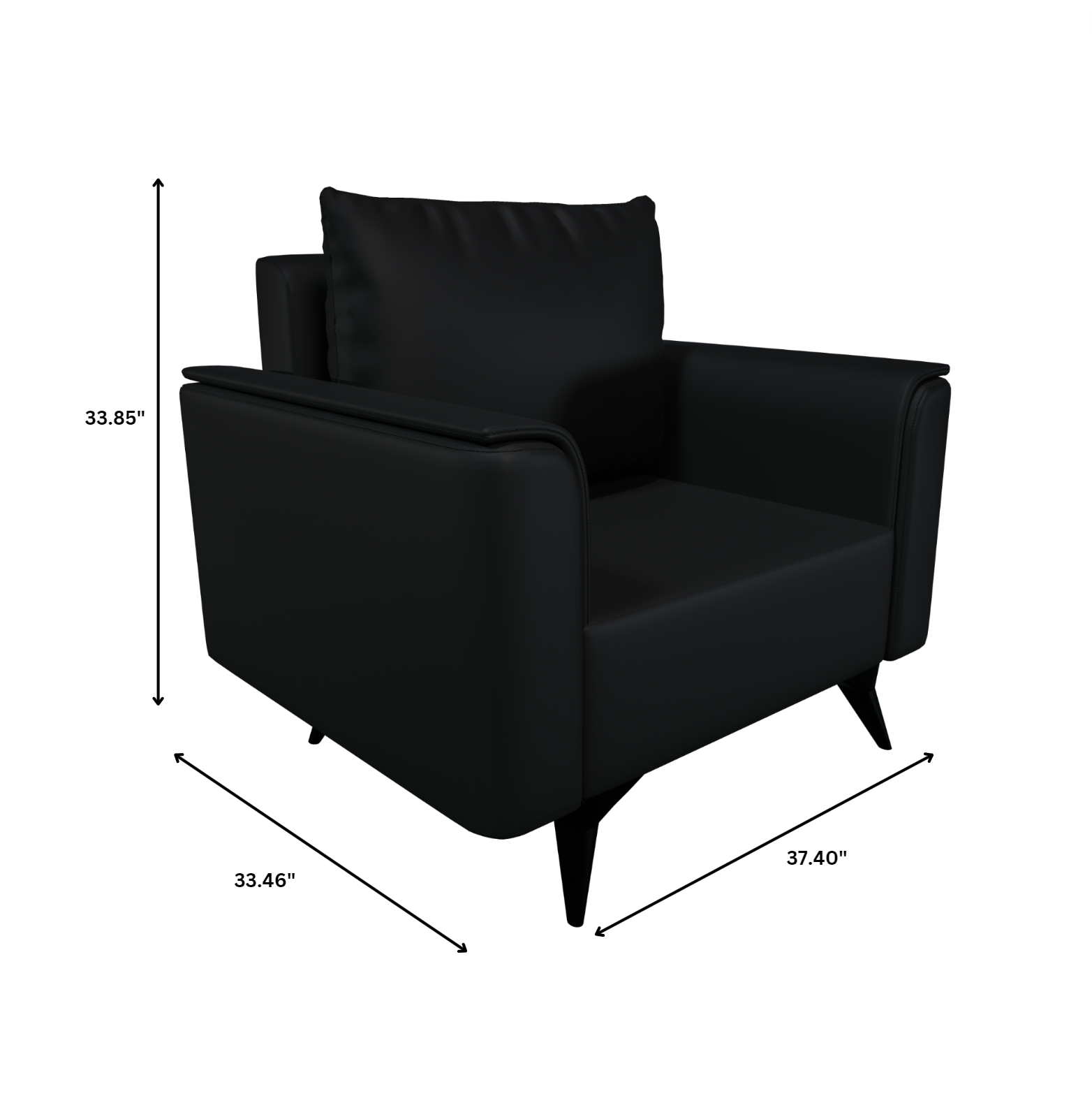 Discover the perfect blend of style and comfort with the Rusk Modern Single Seater Sofa Armchair by Skyline. This elegant armchair is upholstered in premium vegan leather, offering a luxurious feel and easy maintenance. The generously foam-filled seat and backrest ensure maximum comfort for lounging or reading. Built with a solid wood frame and sturdy steel legs, it provides robust support and can hold up to 300 lbs, making it both durable and reliable. The seat construction features web suspension, enhancing its longevity and resilience. Designed to complement both modern and contemporary interiors, the Rusk Single Seater Sofa is a versatile addition to any living space, seamlessly blending style and functionality.