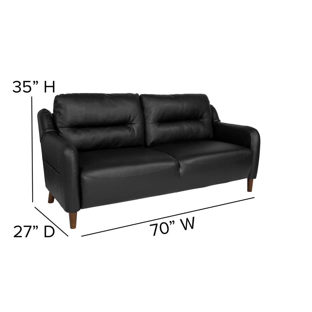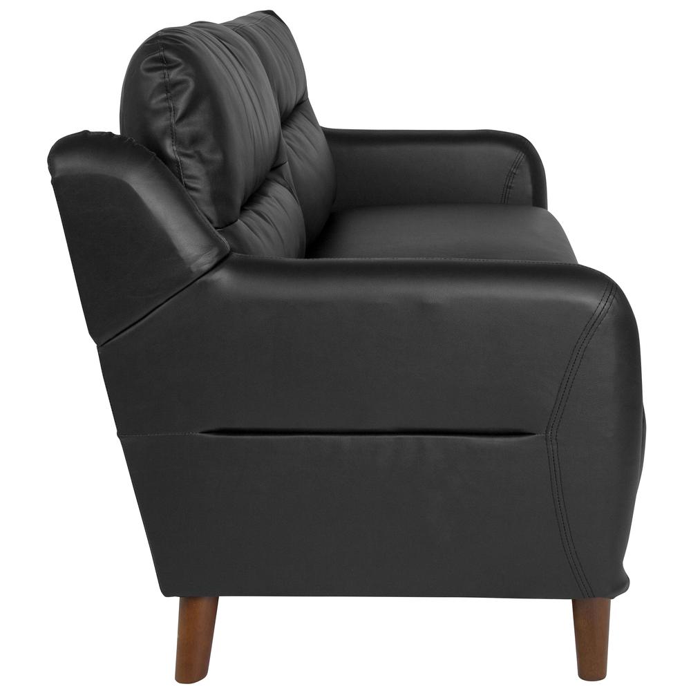 Upholstered Bustle Back Sofa in Black LeatherSoft