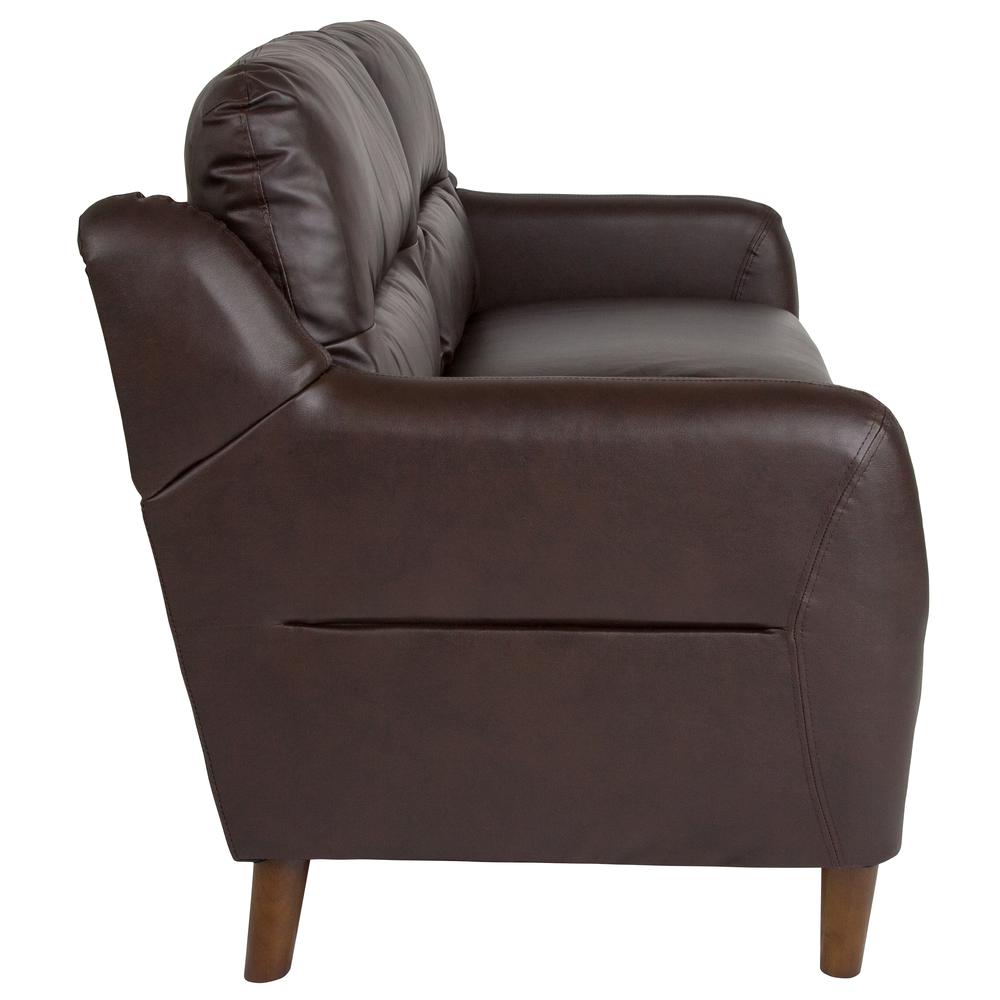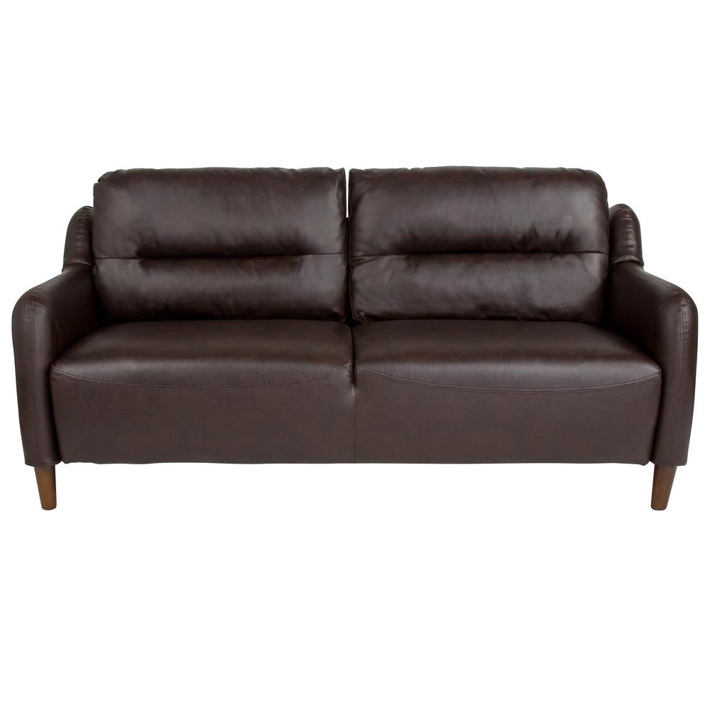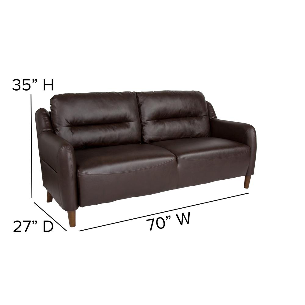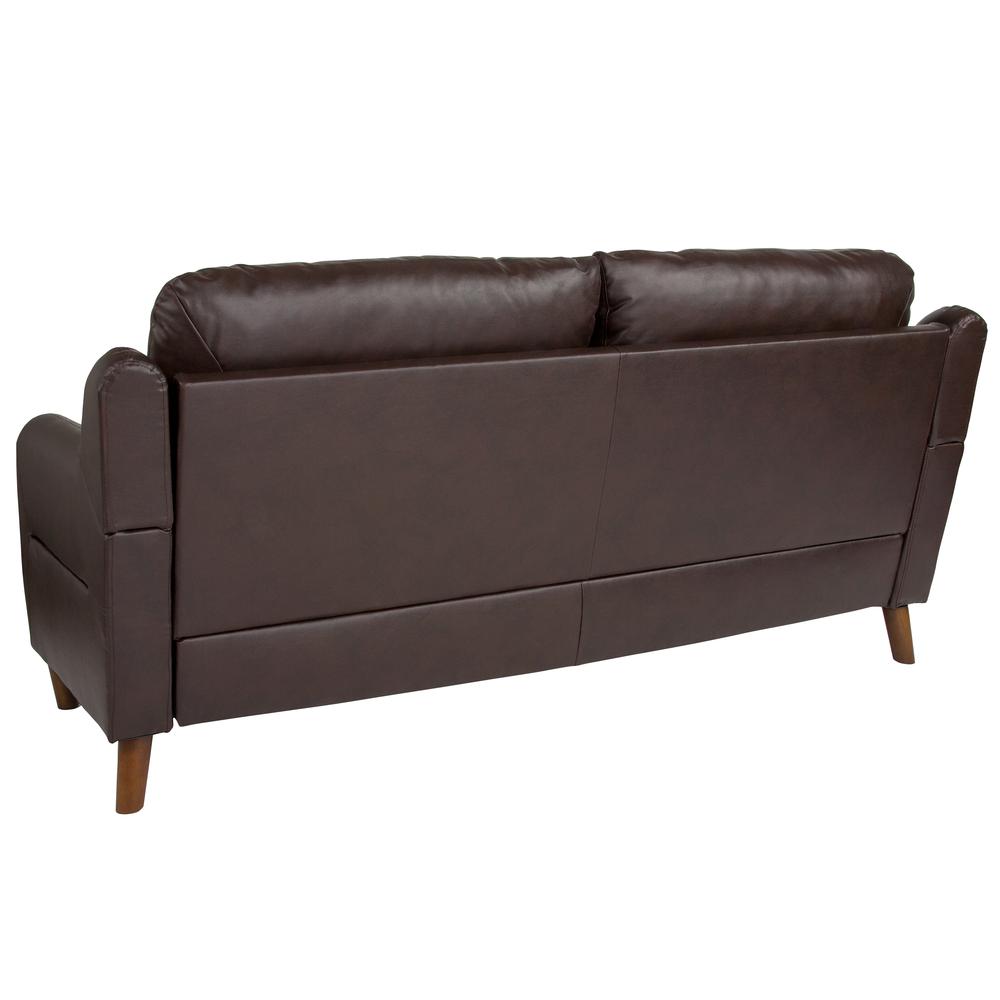 Upholstered Bustle Back Sofa in Brown LeatherSoft