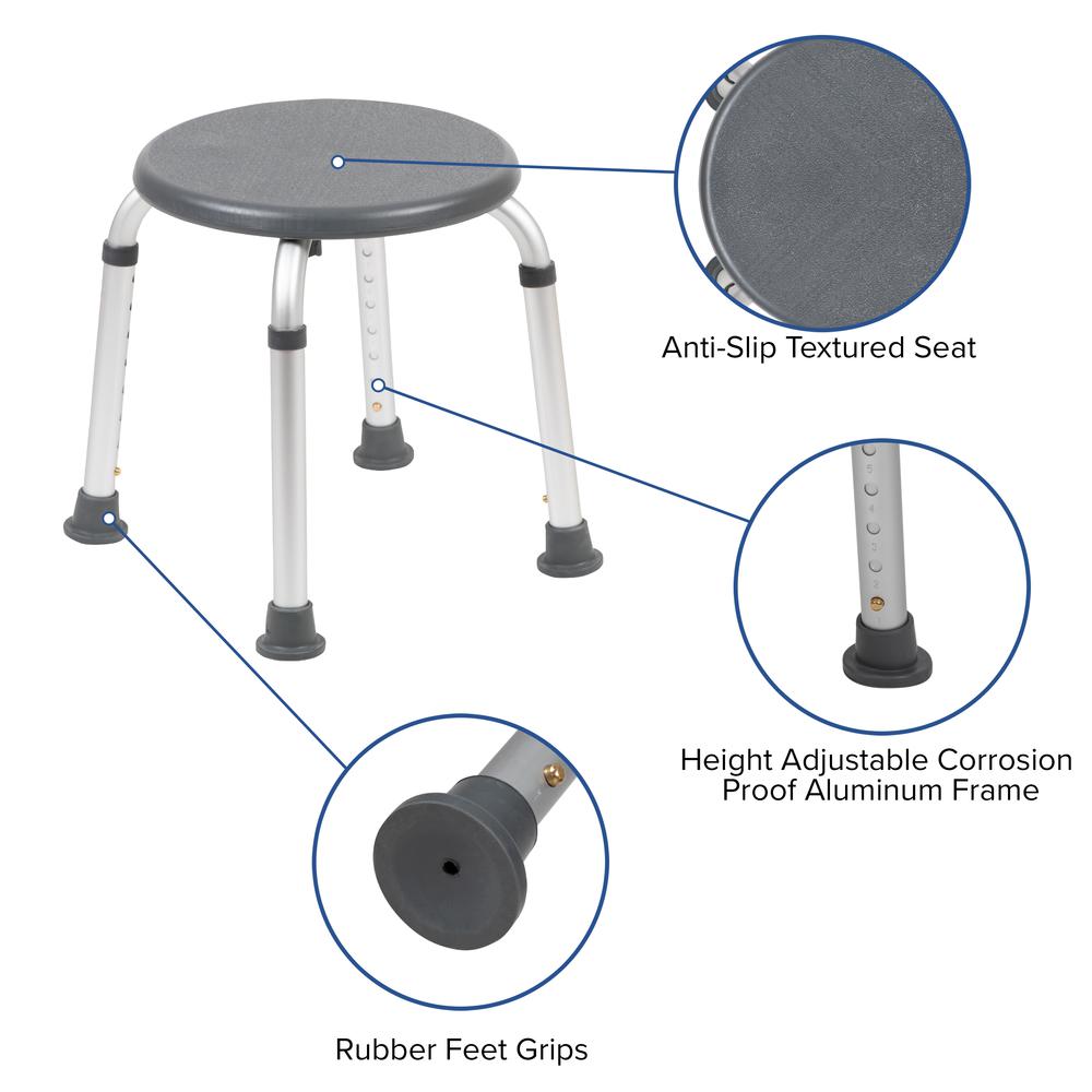 HERCULES Series Tool-Free and Quick Assembly, 300 Lb. Capacity, Adjustable Gray Bath & Shower Stool