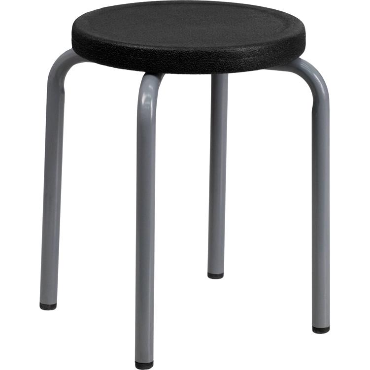 Stackable Stool with Black Seat and Silver Powder Coated Frame