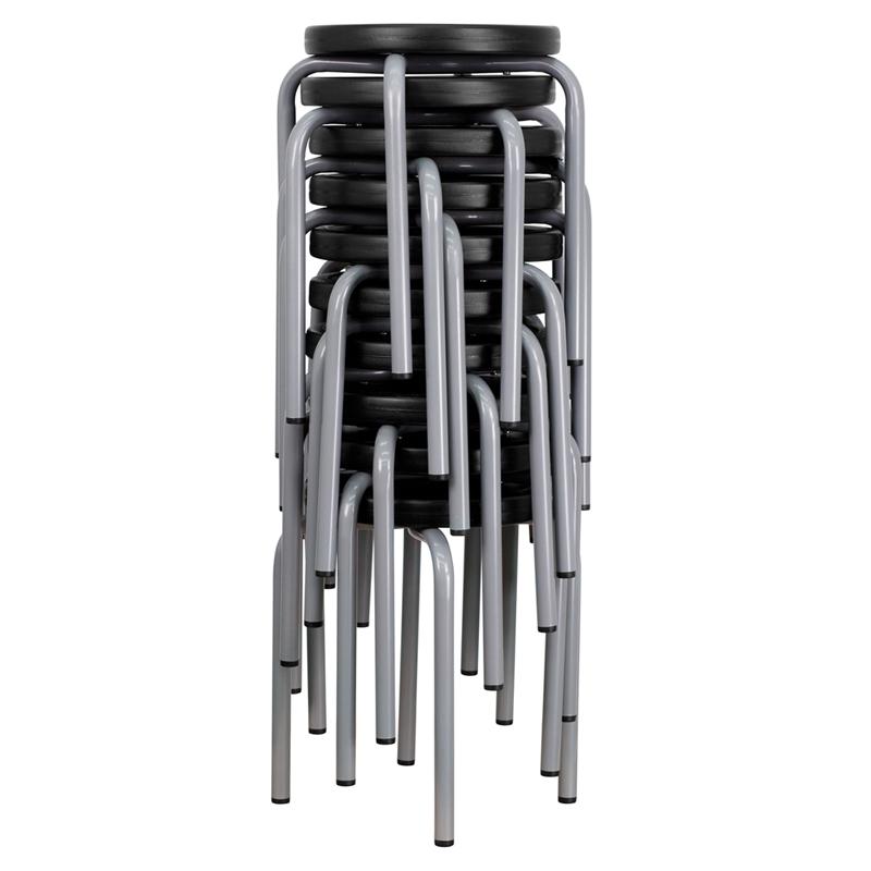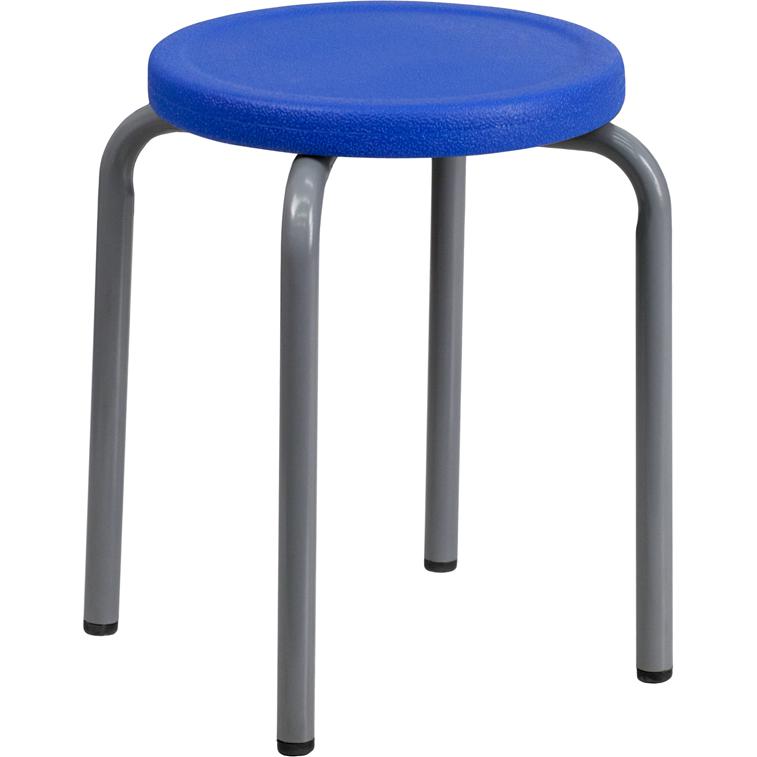 Stackable Stool with Blue Seat and Silver Powder Coated Frame