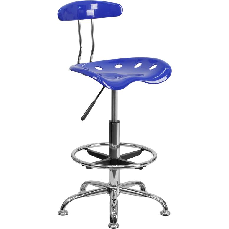 Vibrant Nautical Blue and Chrome Drafting Stool with Tractor Seat