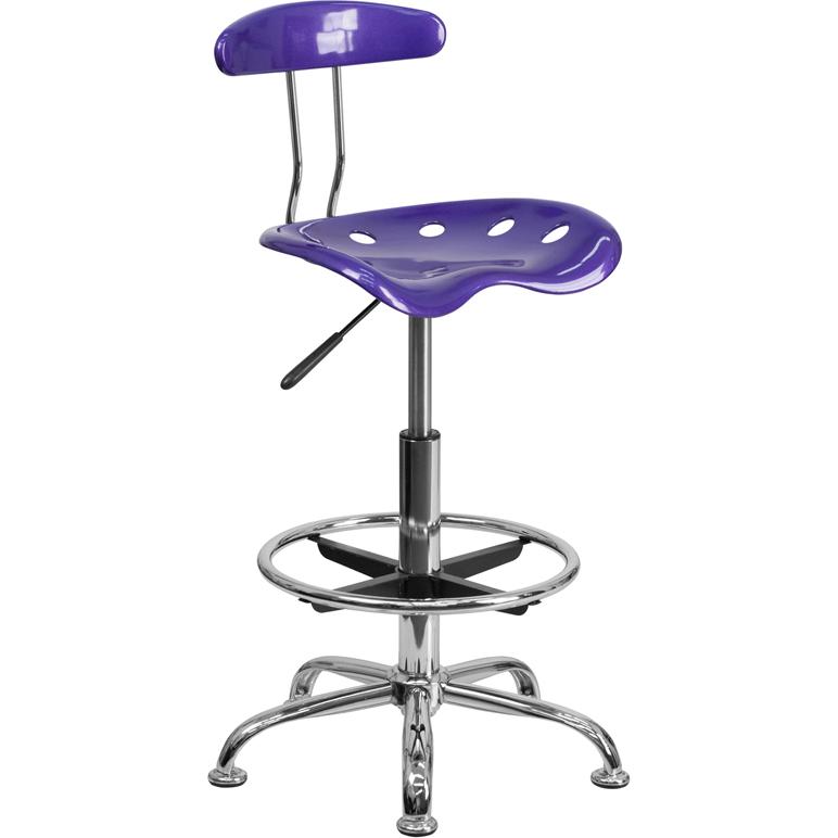 Vibrant Violet and Chrome Drafting Stool with Tractor Seat
