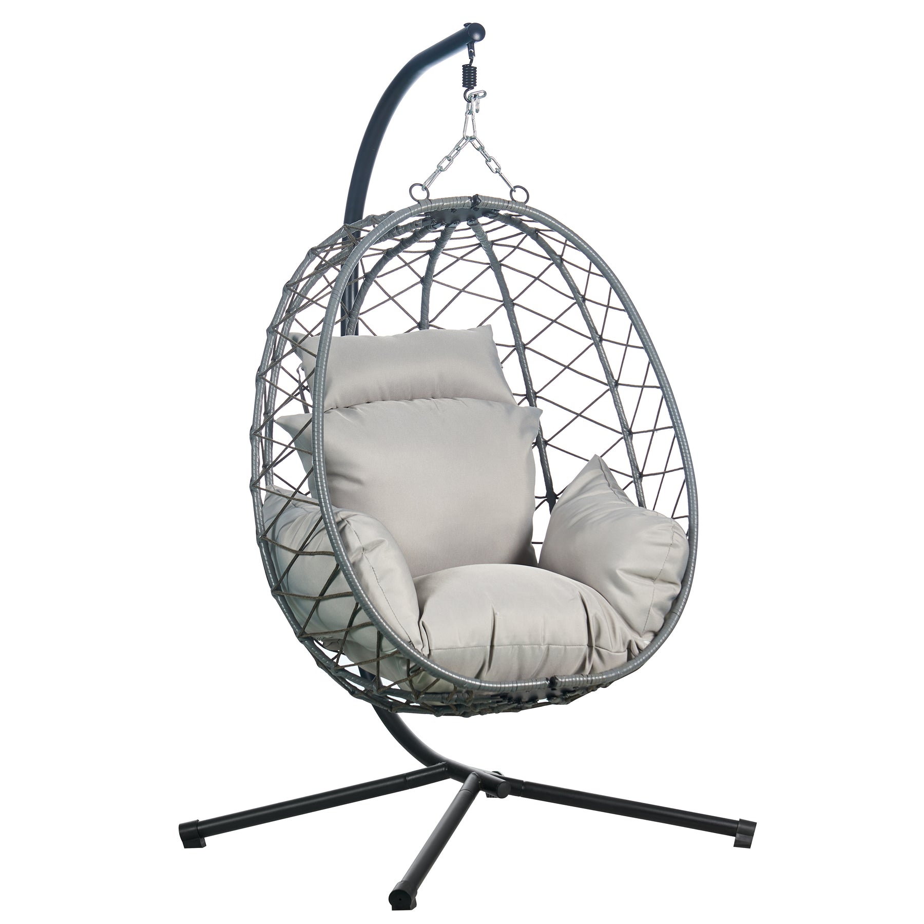 Summit Mid-Century Modern Outdoor Single Person Egg Swing Chair in Grey Steel Frame With Removable Cushions