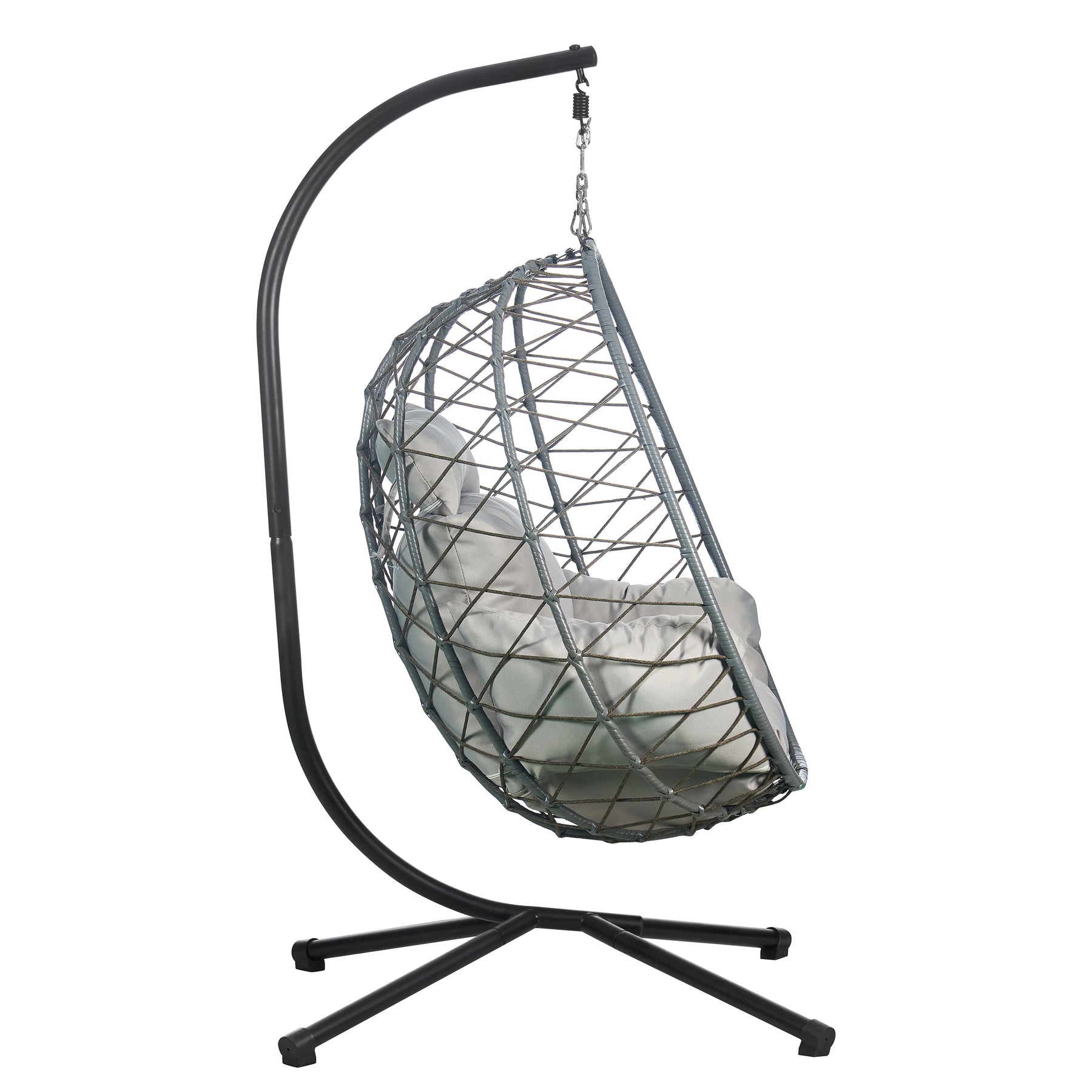 - The swing chair's foldable shell is a game-changer for those dealing with limited storage. This feature ensures that you can effortlessly tuck it away when not in use, maximizing space efficiency without compromising on comfort or style.