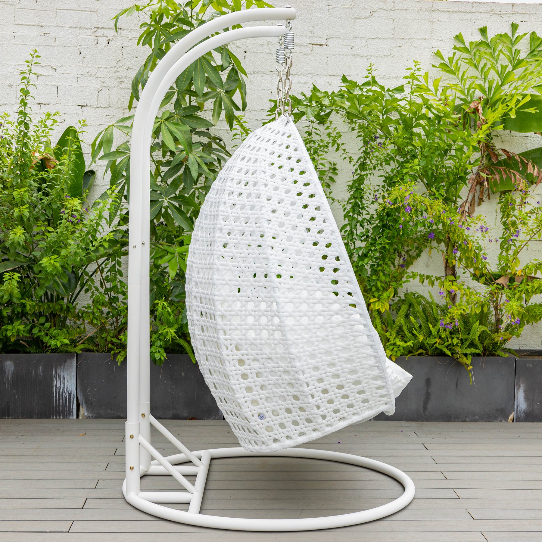 • Experience unparalleled comfort with our egg-shaped two-person seat swing chair set, perfect for indoor and outdoor furniture relaxation. Its unique design merges elegance with coziness, reinforced by double chain hooks and a sturdy metal stand for unwavering stability. Enhanced by a wicker frame and paired with a soft seat cushion, it provides the perfect setting for intimate conversations.