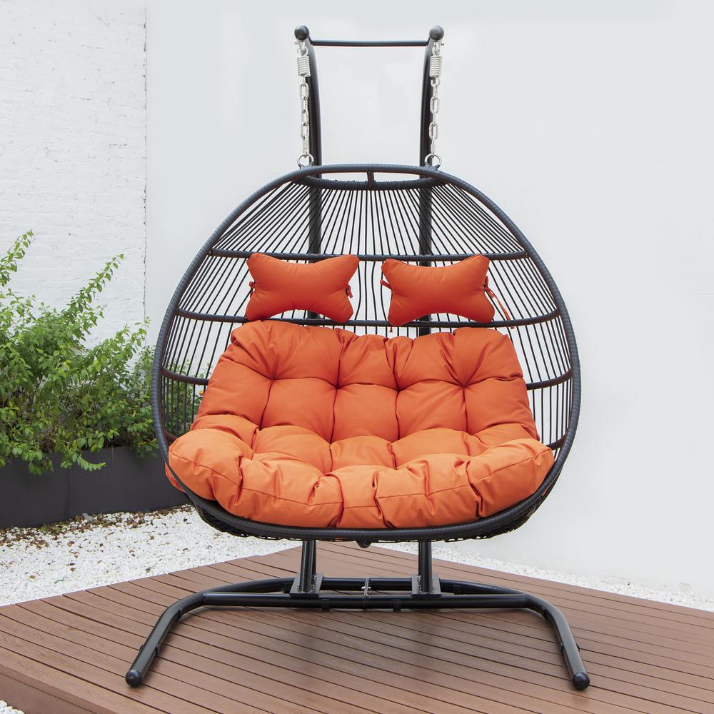 This Fun Egg-Shaped Porch Swing Chair Has A Folding Feature For Easy Storage. The Egg Chair Fits 2 People Comfortably And Was Built To Last In The Outdoors With Its Strong Durable Iron Frame It Will Be Perfect For All Weathers. This Unique Swinging Chair Is The Perfect Addition To Any Space Outside, A Backyard Patio, Deck, In A Sun-Room Or Garden, Or Near A Pool, Or Outdoor Bar.