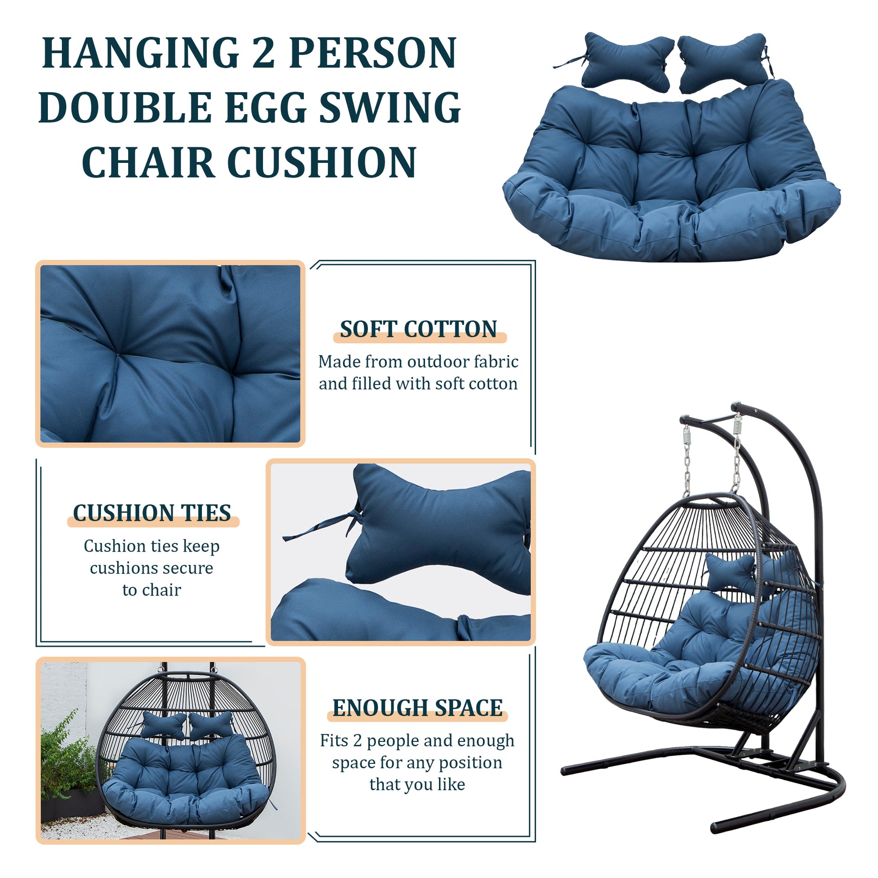 Wicker 2 Person Double Folding Hanging Egg Swing Cushion