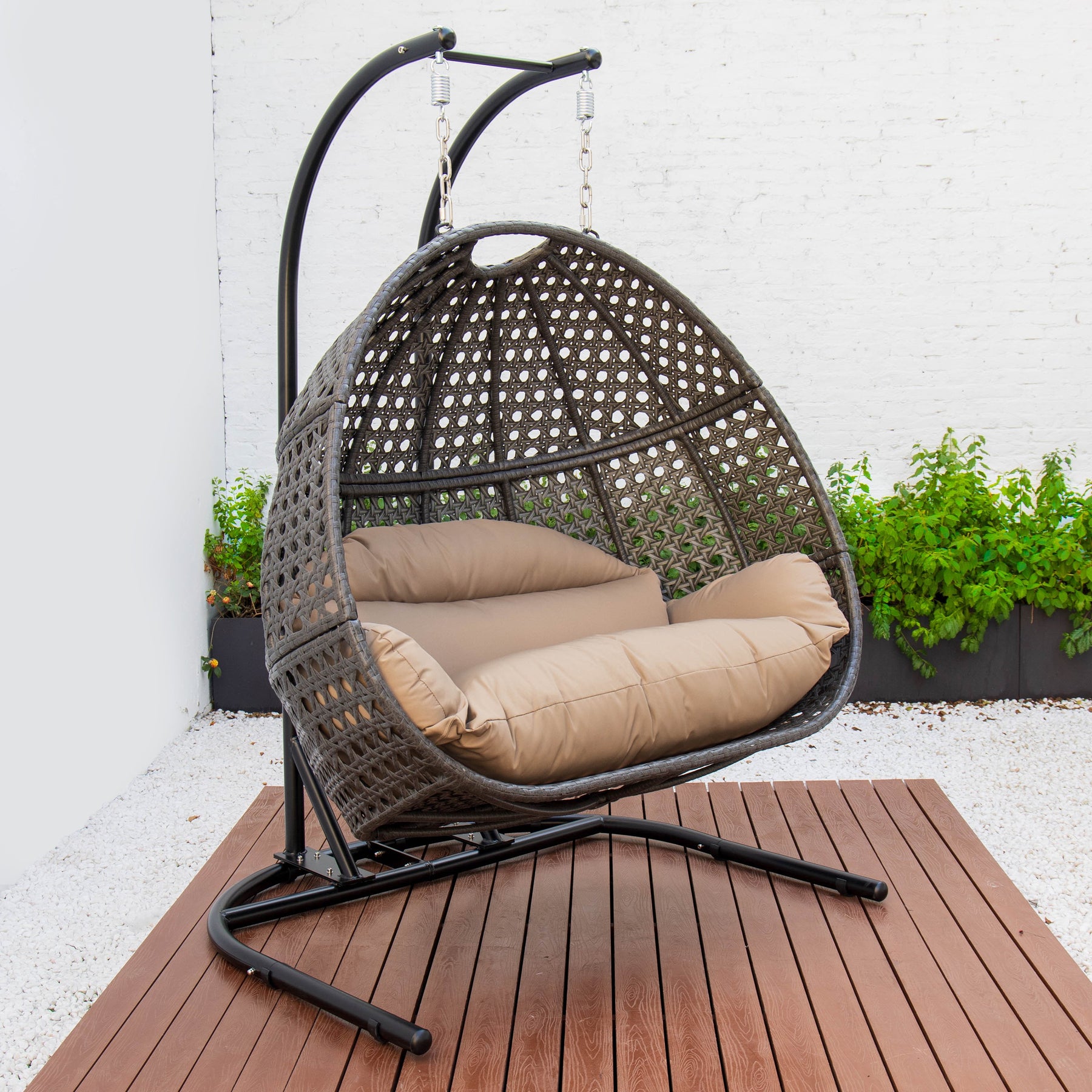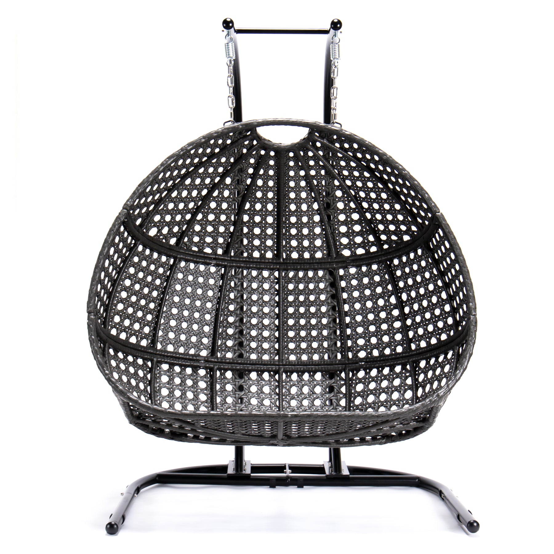 This fun egg-shaped porch swing chair that fits 2 people comfortably was built to last in the outdoors with its strong durable iron frame it will be perfect for all weathers. Sit in luxurious comfort while surrounded by the peace and beauty of your backyard, or enjoy a good book indoors with this comfortable hanging chair.