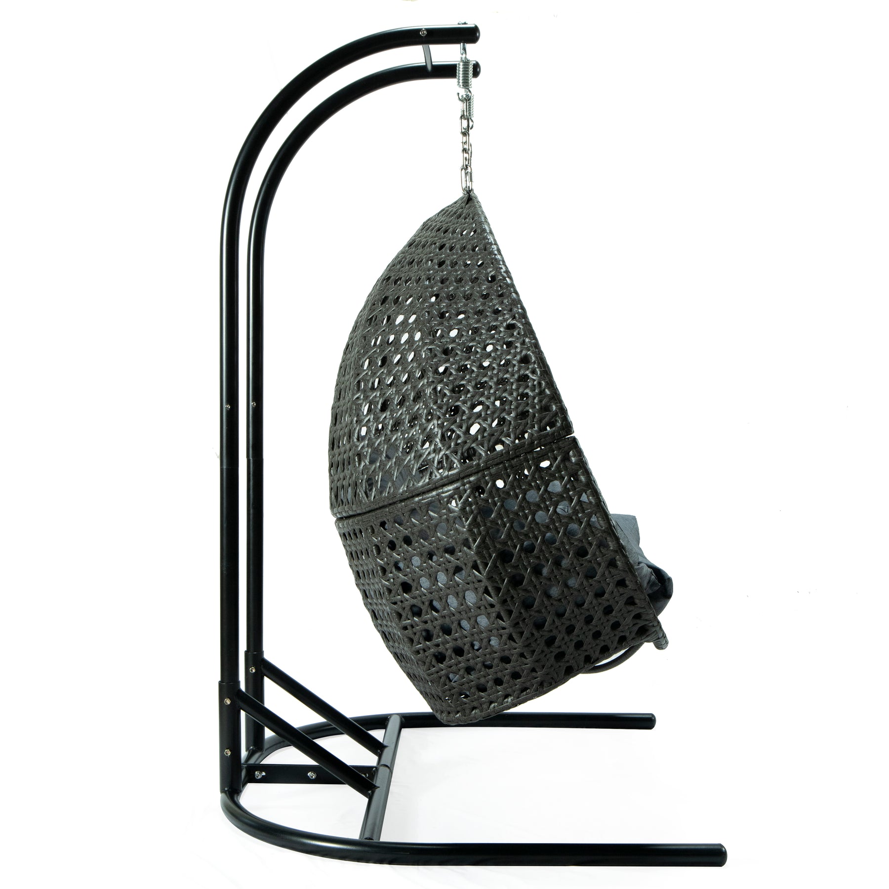 This fun egg-shaped porch swing chair that fits 2 people comfortably was built to last in the outdoors with its strong durable iron frame it will be perfect for all weathers. Sit in luxurious comfort while surrounded by the peace and beauty of your backyard, or enjoy a good book indoors with this comfortable hanging chair.