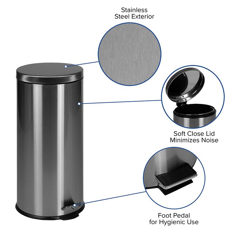 Stainless Steel Fingerprint Resistant Soft Close, Step Trash Can - 5L (1.3 Gallons)