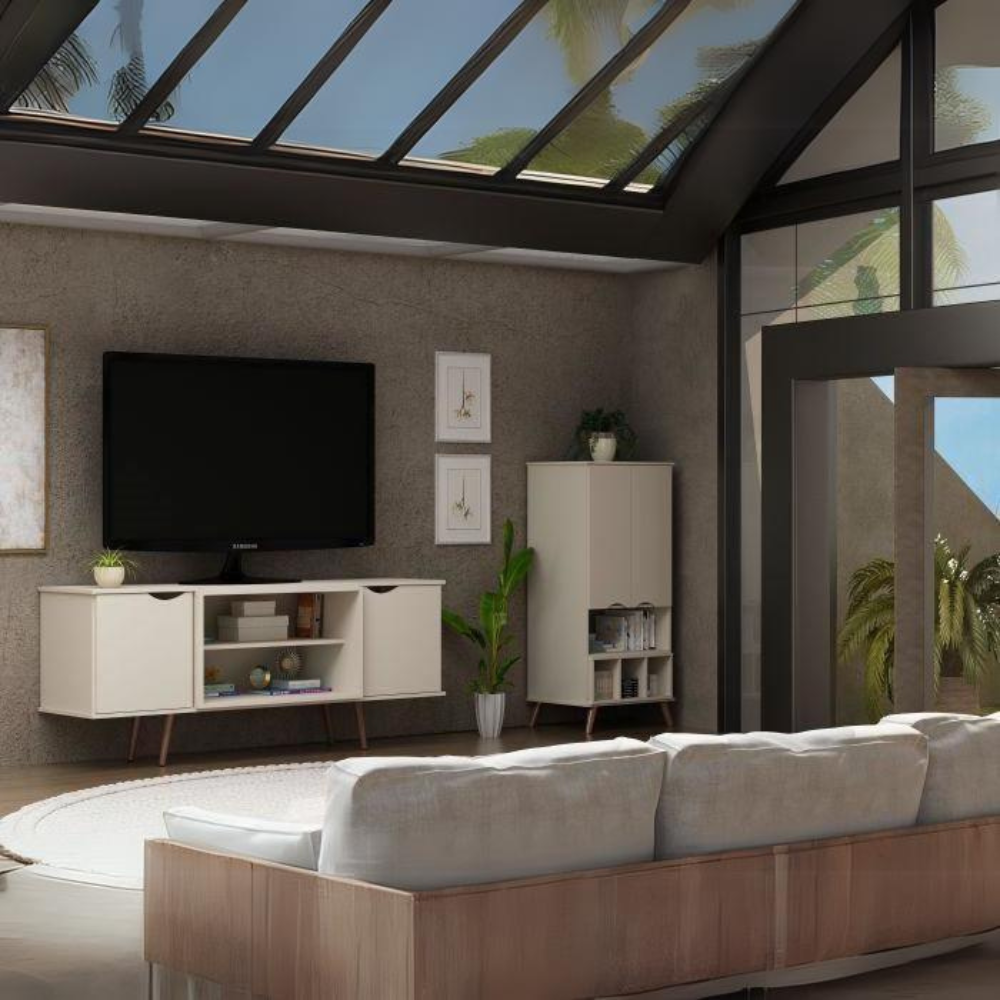 Hampton 62.99 TV Stand with 4 Shelves and Solid Wood Legs in Off White