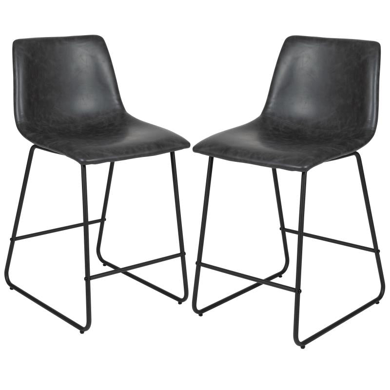 24 inch LeatherSoft Counter Height Barstools in Gray, Set of 2
