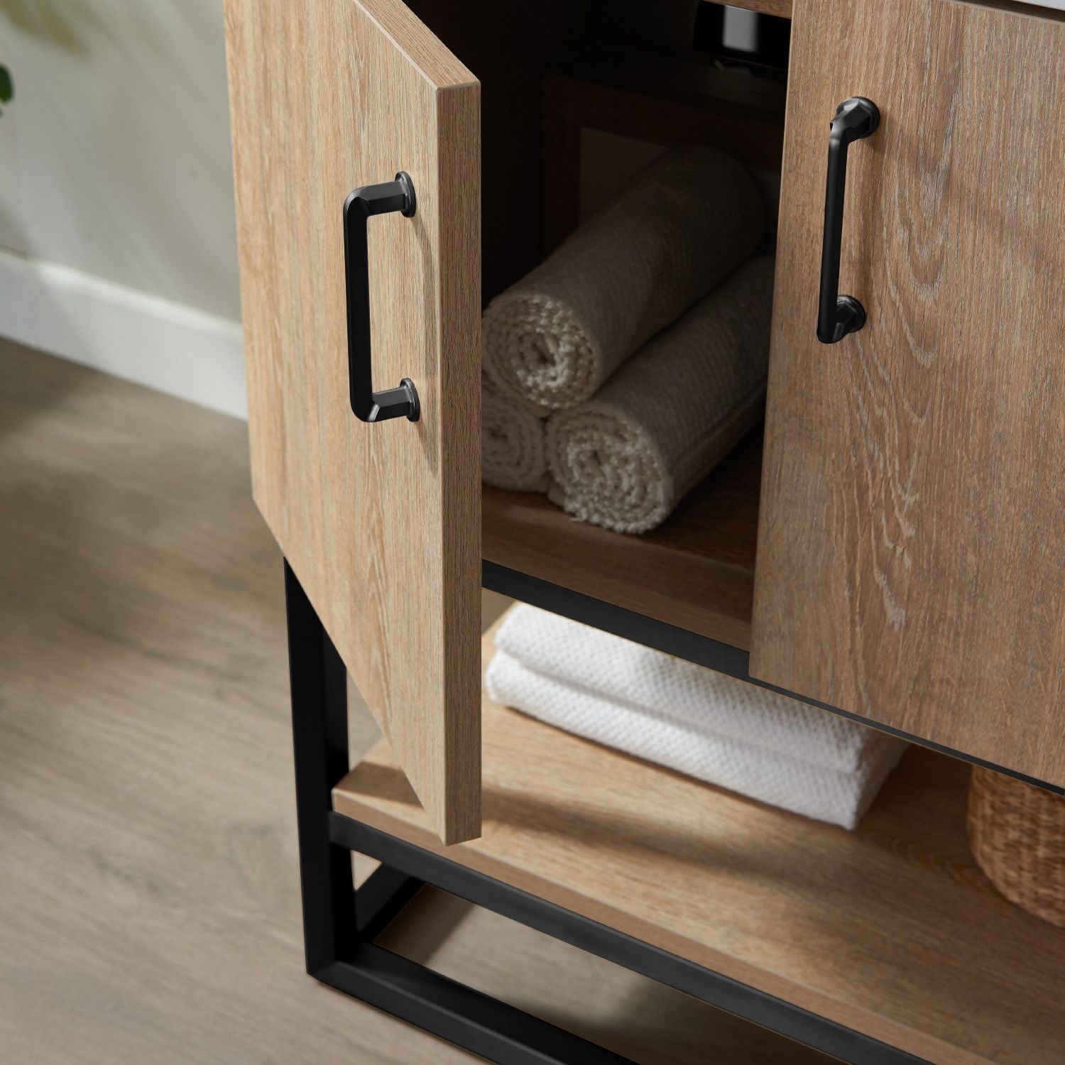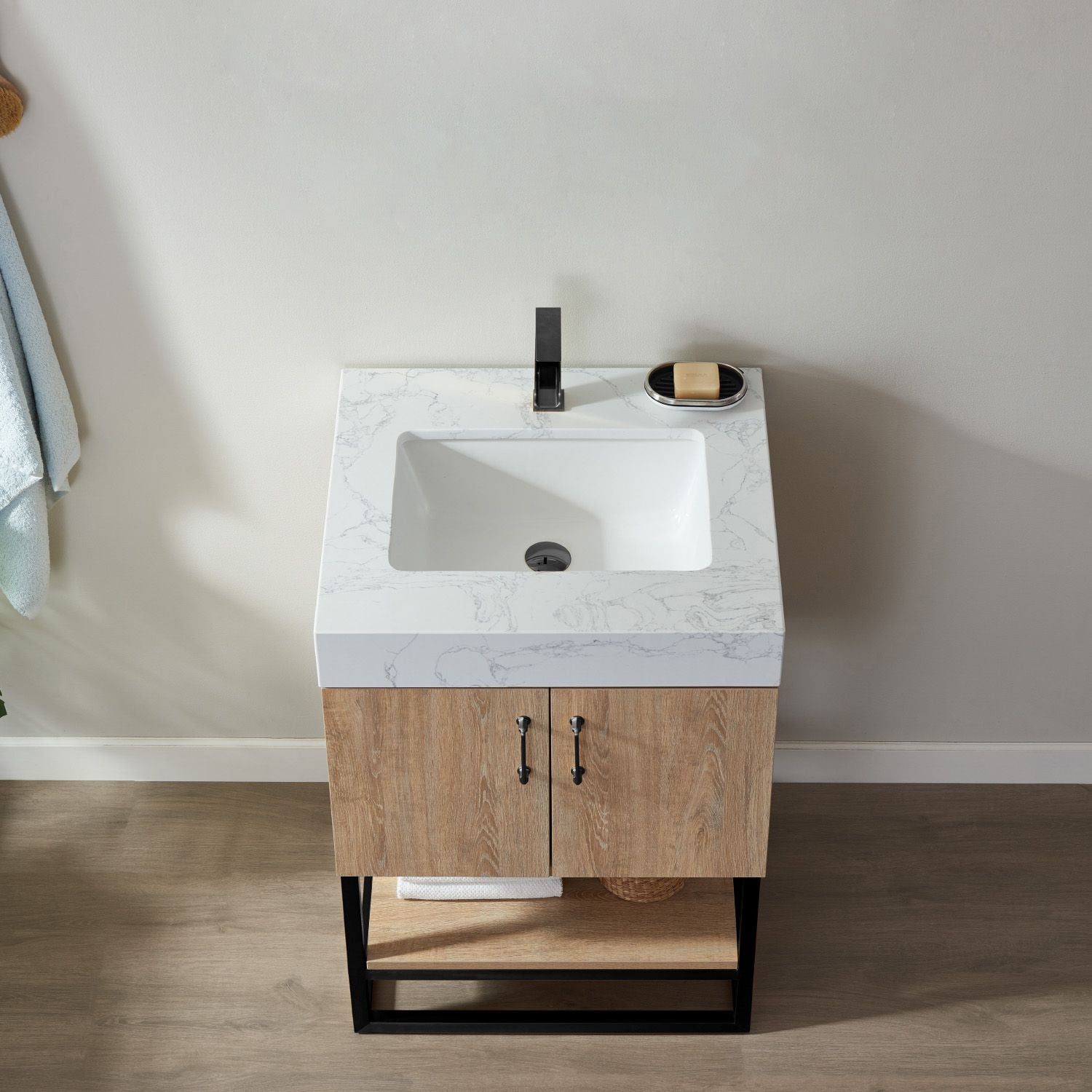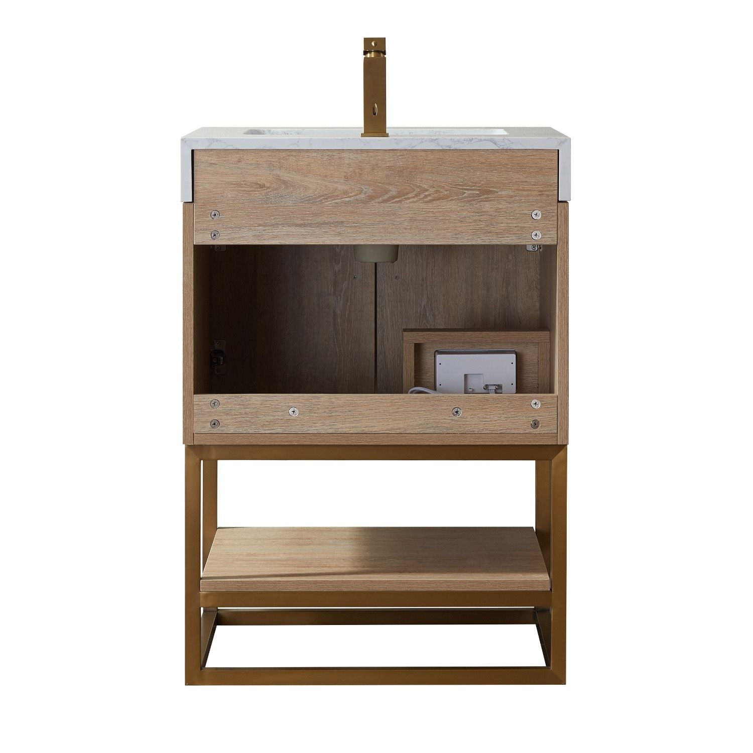 Alistair 24B" Single Vanity in North American Oak with White Grain Stone Countertop Without Mirror