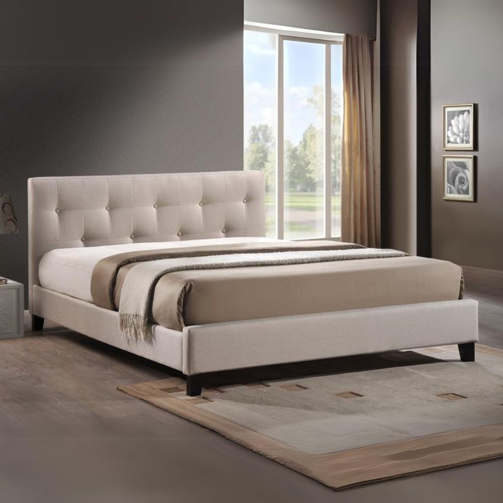Annette Light Beige Linen Modern Bed with Upholstered Headboard - Queen Size