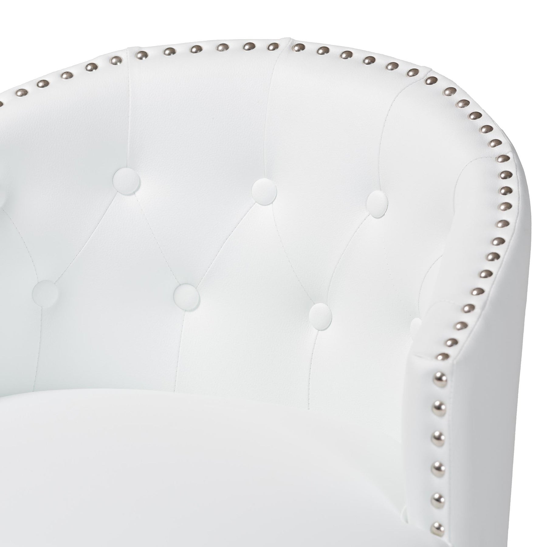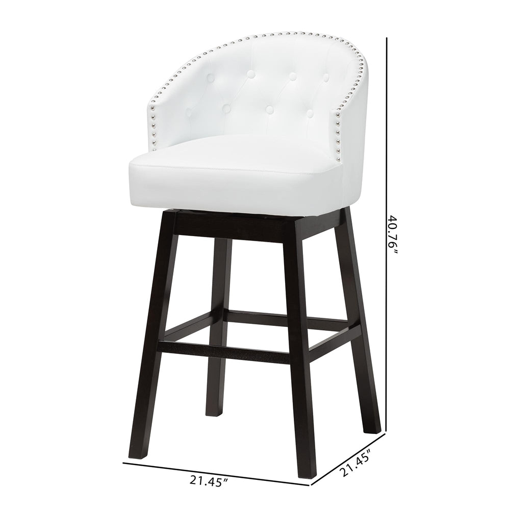 Avril White Faux Leather Tufted Swivel Barstool with Nail heads Trim (Set of 2)