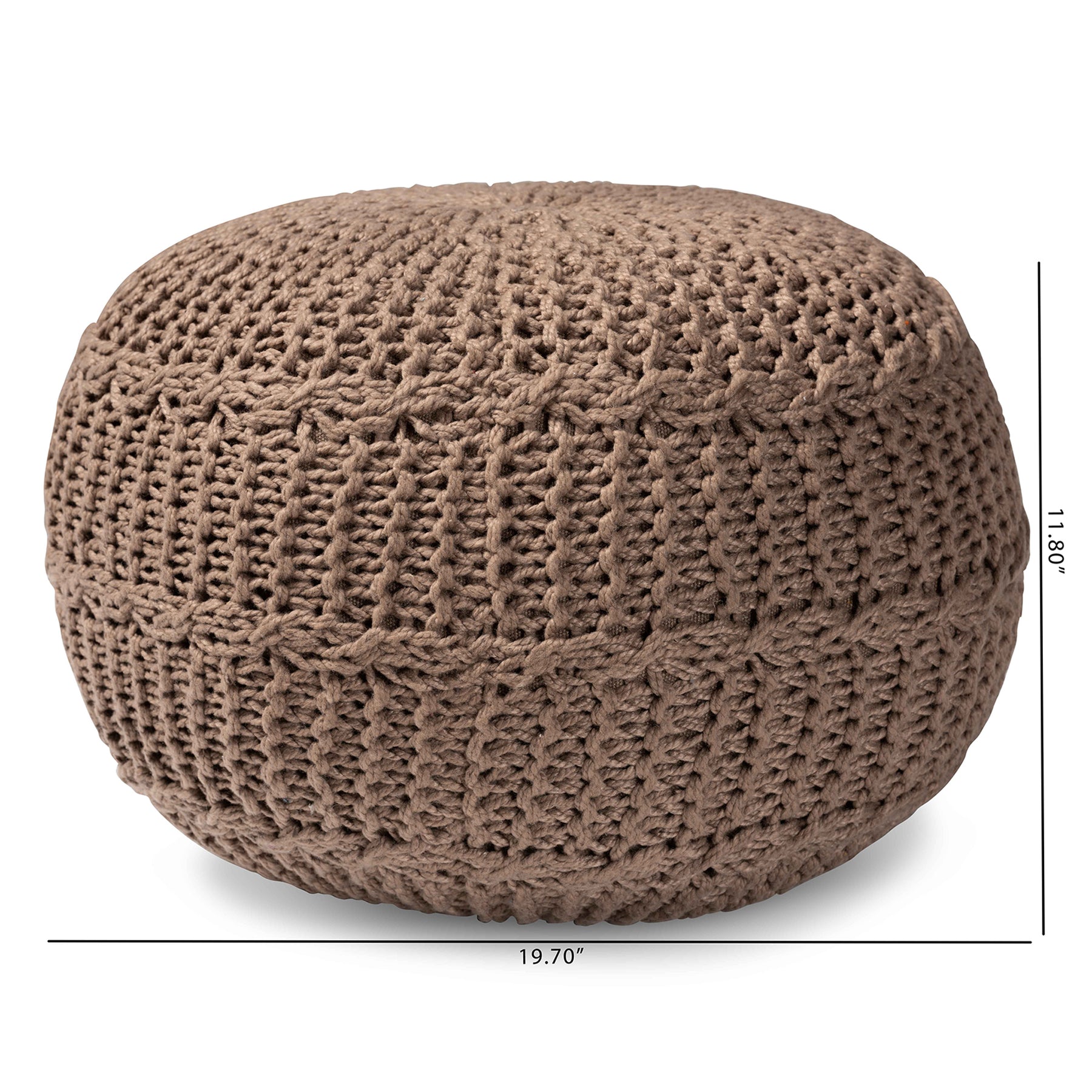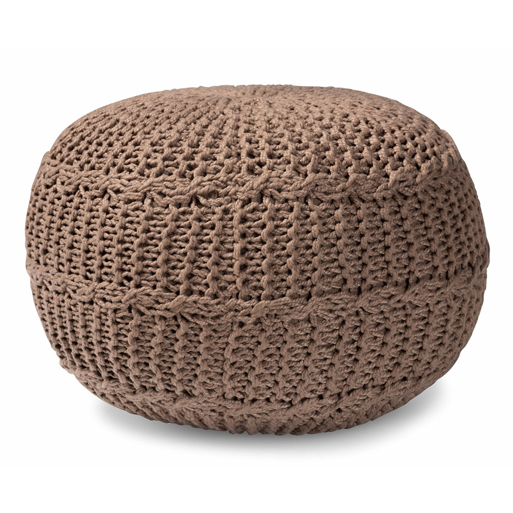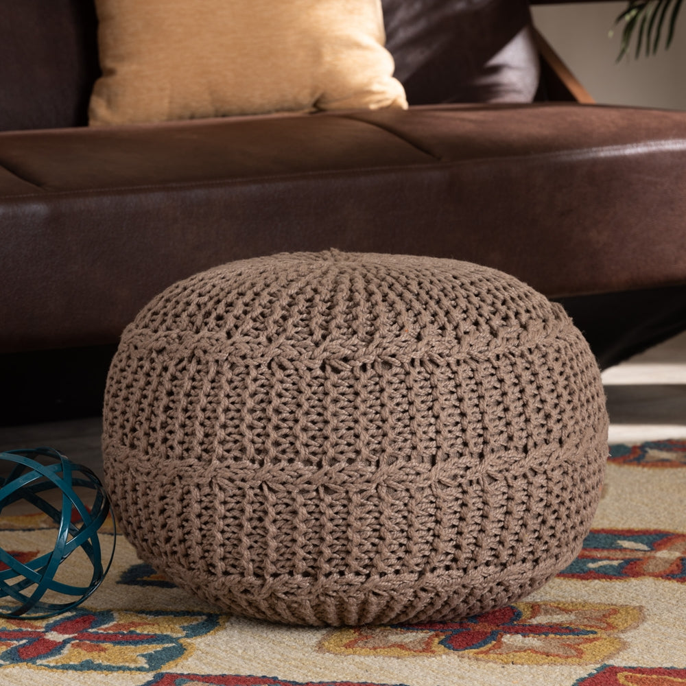 Palmas Modern and Contemporary Bohemian Taupe Handwoven Pet Yarn Pouf Ottoman
