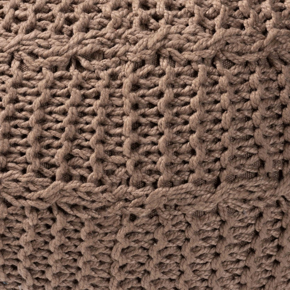 Add a chic accent your interior with the plush and cozy Palmas pouf ottoman. Handwoven in India, this pouf is made from PET yarn. Taupe threads lend a neutral color palette that blends well with a variety of room layouts and styles. Its intricate knotted design features round bands that create rich texture and depth. Serving as a superb footstool or as an extra seat, the Palmas pouf ottoman brings a casual, bohemian touch to any space.