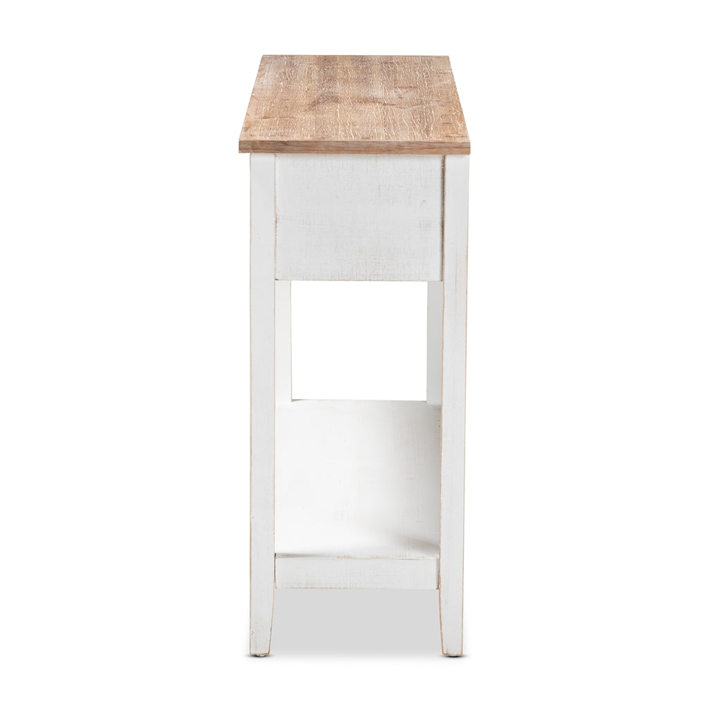 Benedict Traditional Farmhouse and Rustic Two-Tone White and Oak Brown Finished Wood 3-Drawer Console Table