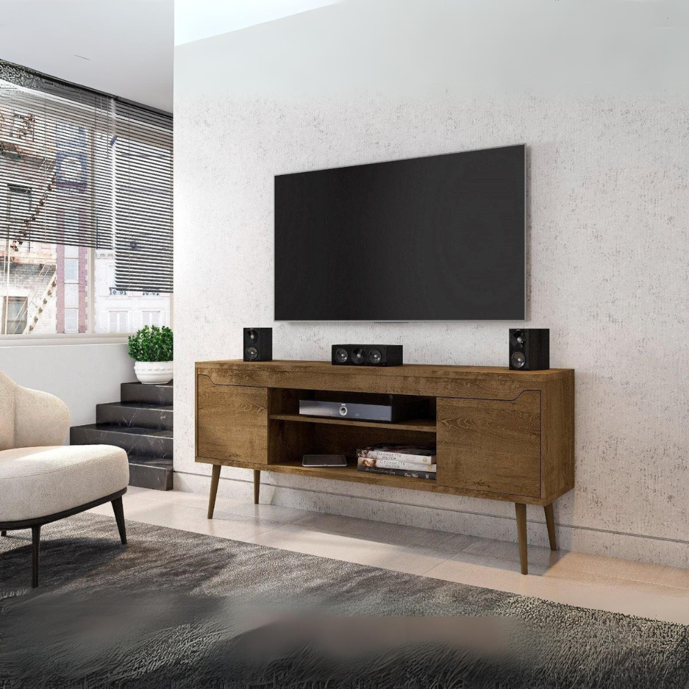 Bradley 62.99 TV Stand Rustic Brown with 2 Media Shelves and 2 Storage Shelves in Rustic Brown with Solid Wood Legs