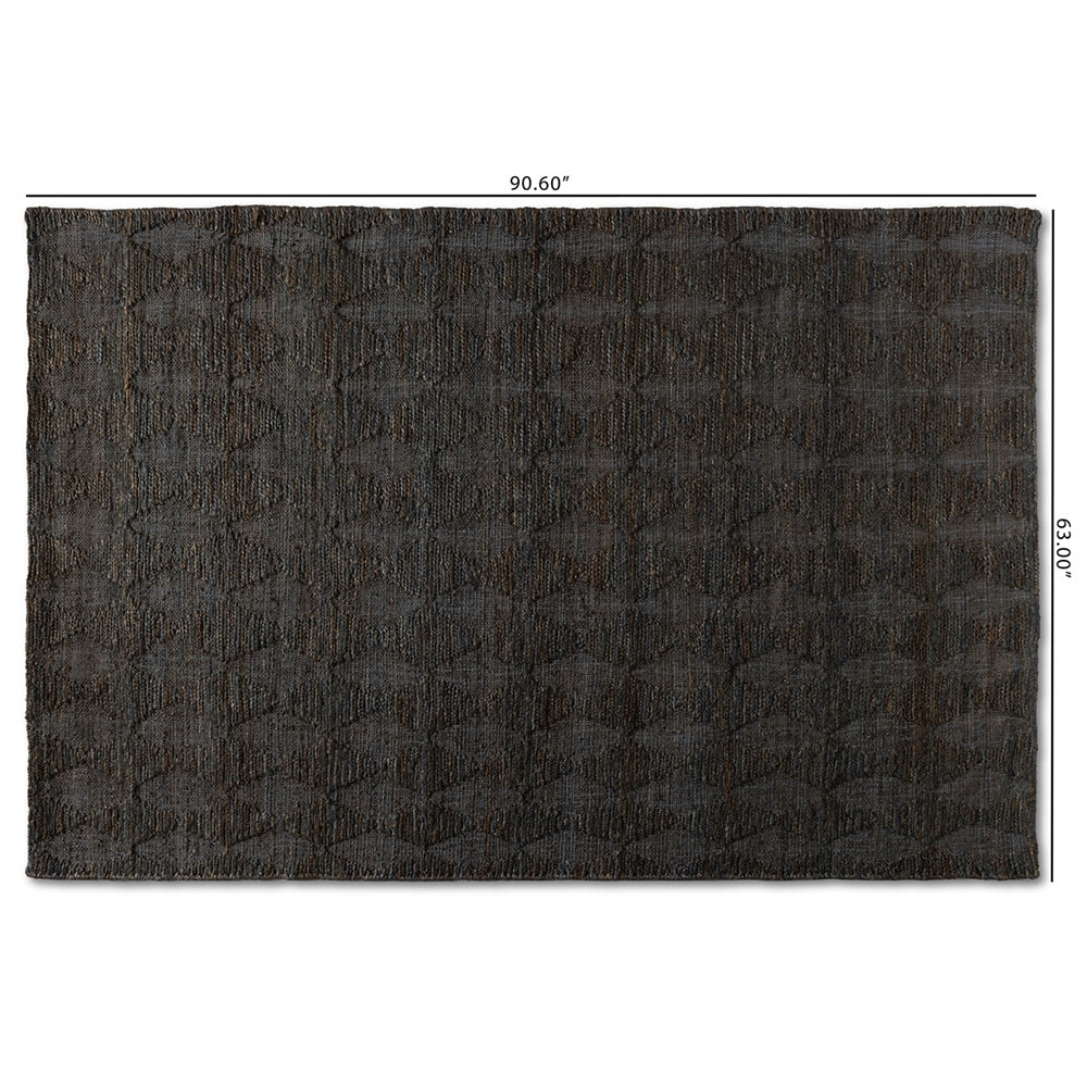 Burma Modern and Contemporary Dark Grey Hand-Knotted Hemp Area Rug
