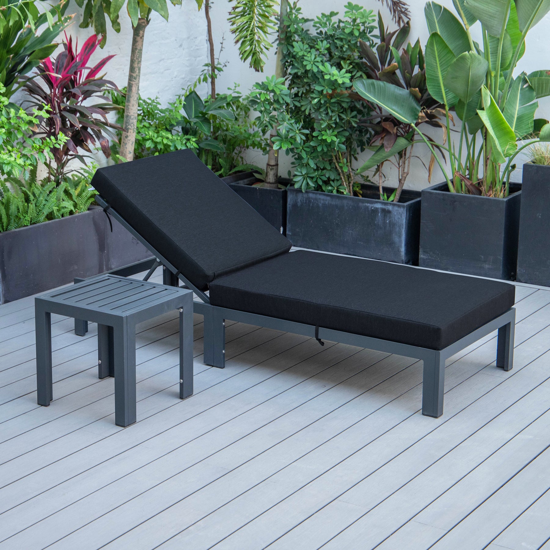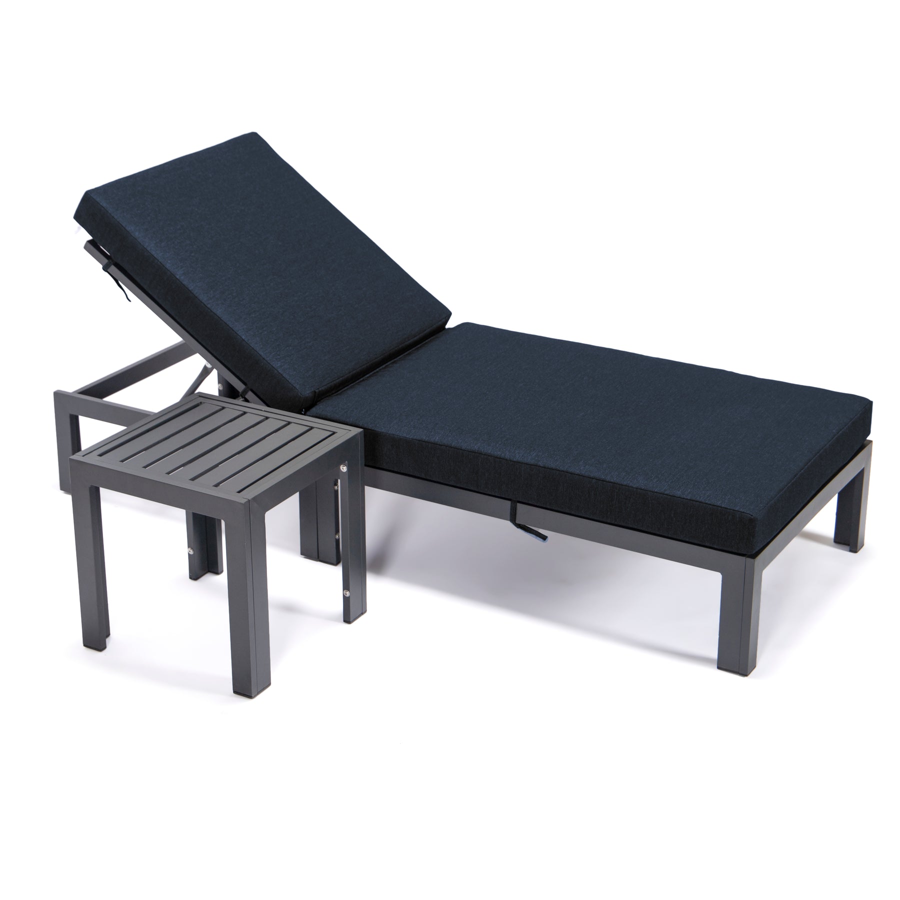 Chelsea Modern Outdoor Chaise Lounge Chair With Side Table & Cushions