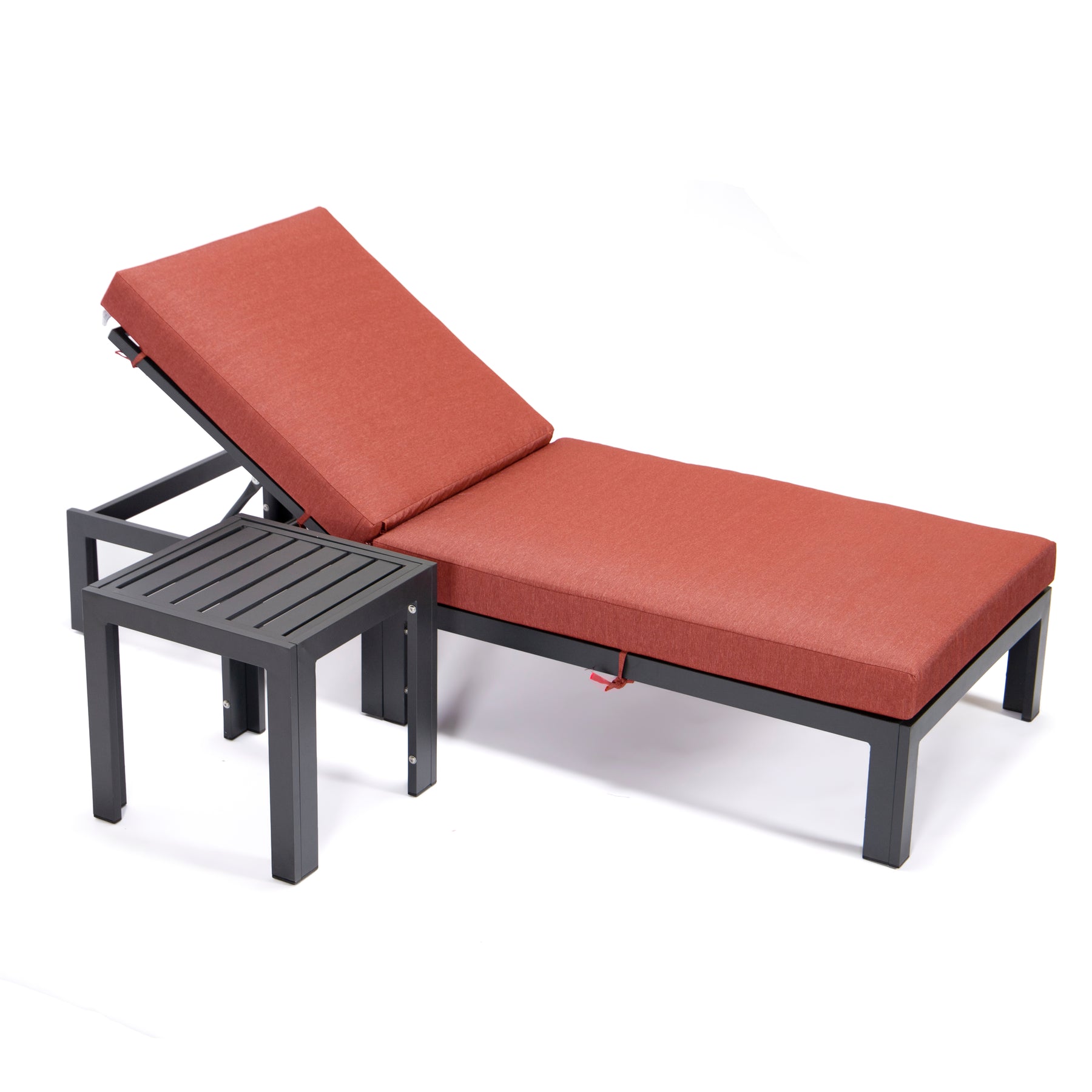 Chelsea Modern Outdoor Chaise Lounge Chair With Side Table & Cushions