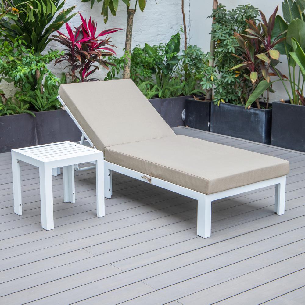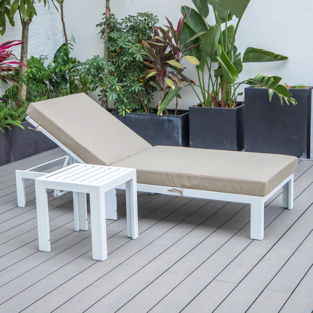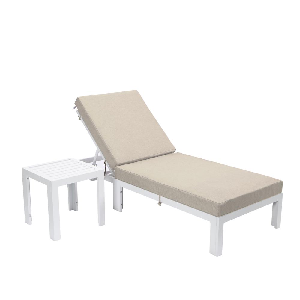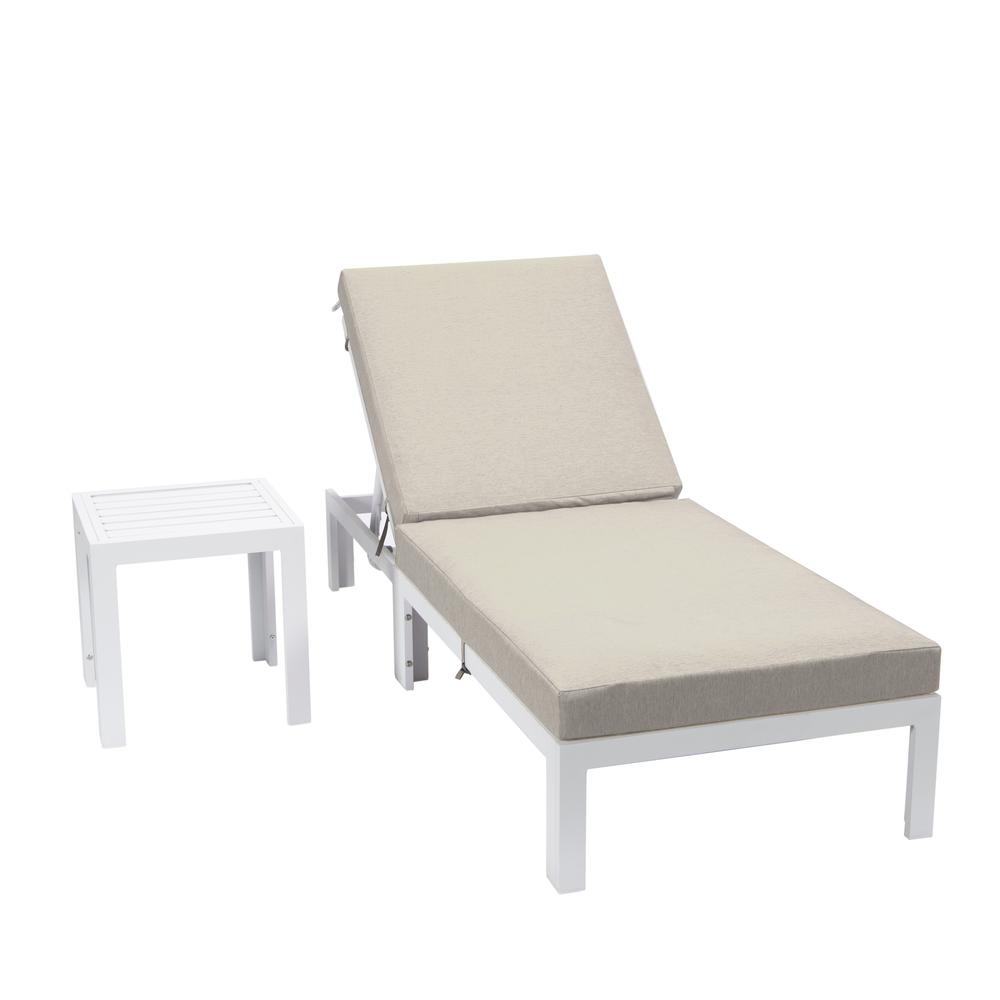 Chelsea Modern Outdoor White Chaise Lounge Chair With Side Table Cushions