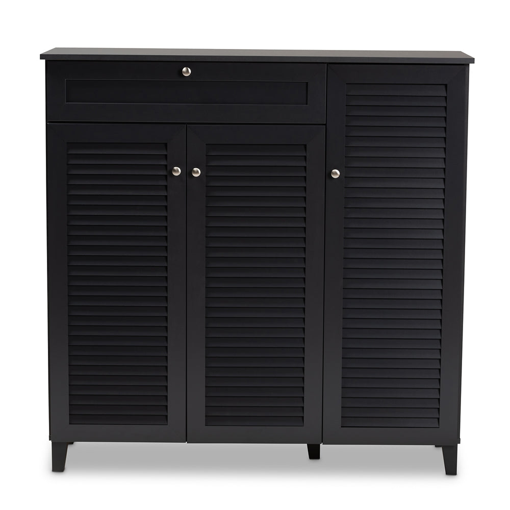 Coolidge Dark Grey Finished 11-Shelf Wood Shoe Storage Cabinet with Drawer